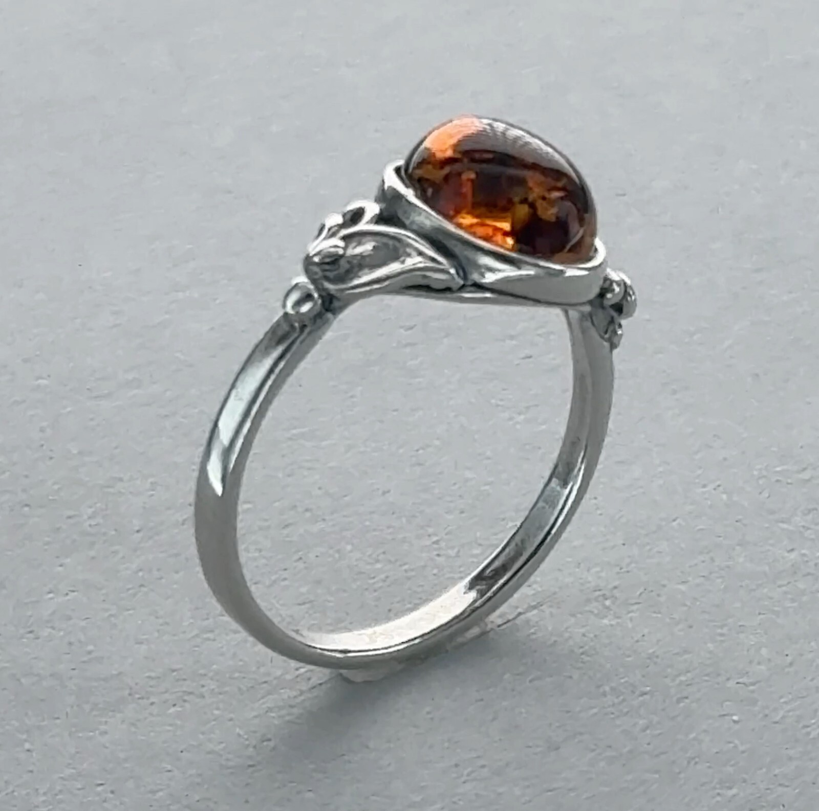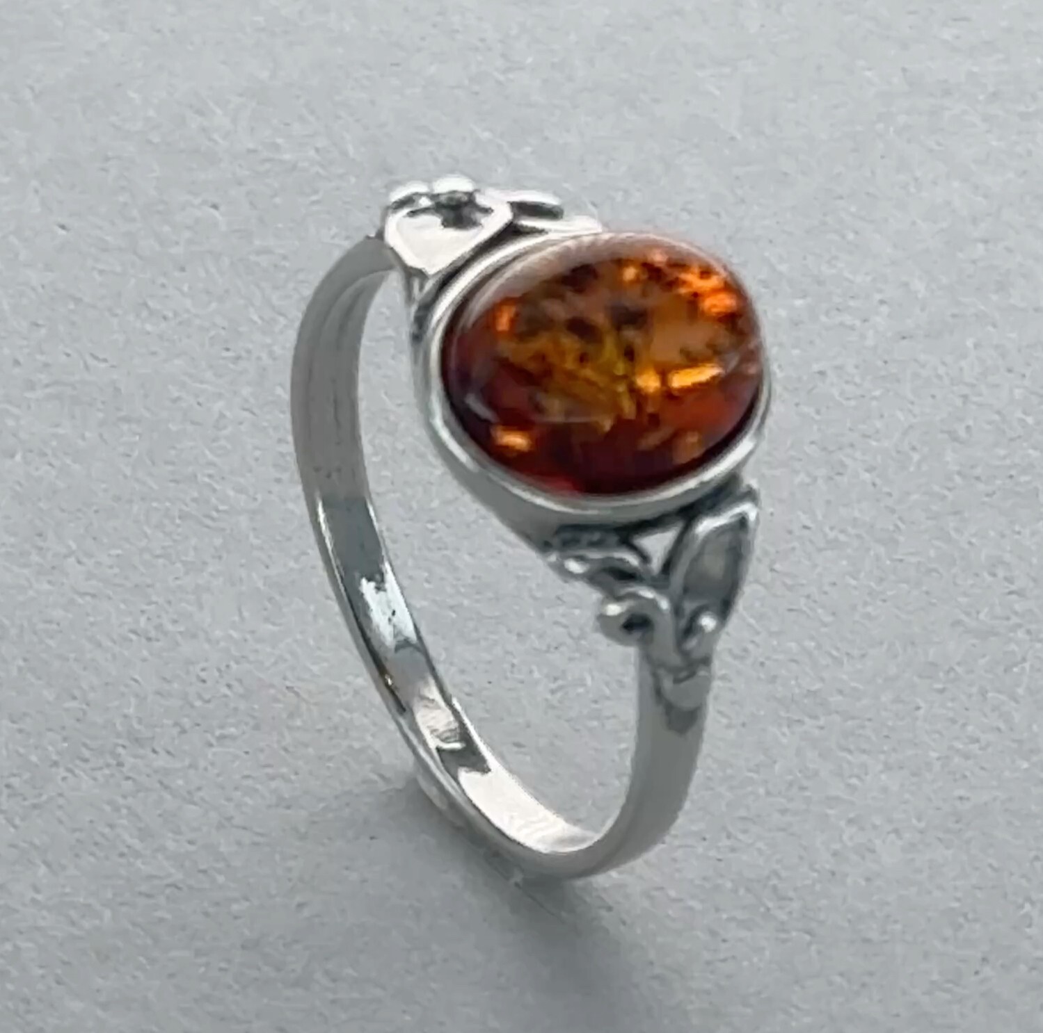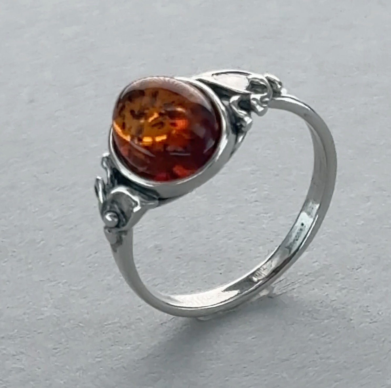 как выглядит Oval - Cognac / Brown BALTIC AMBER Ring - 925 STERLING SILVER - Poland 81e фото