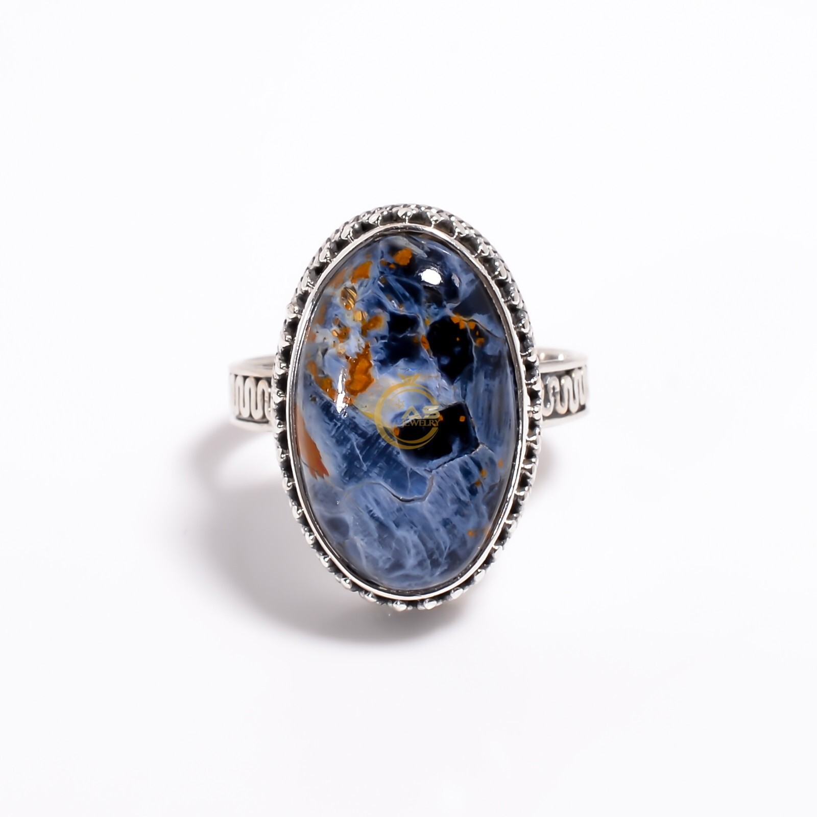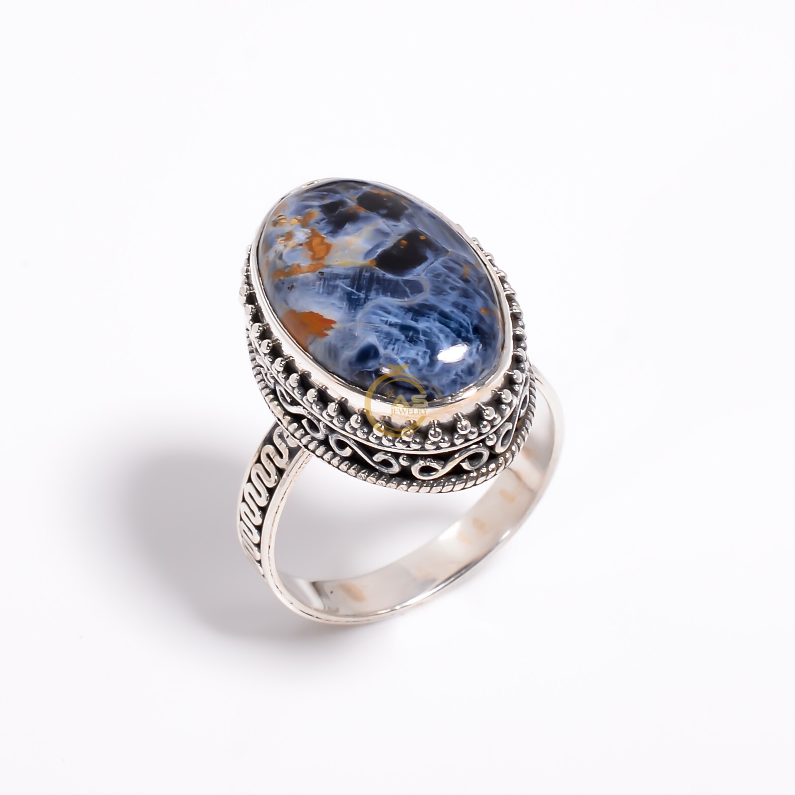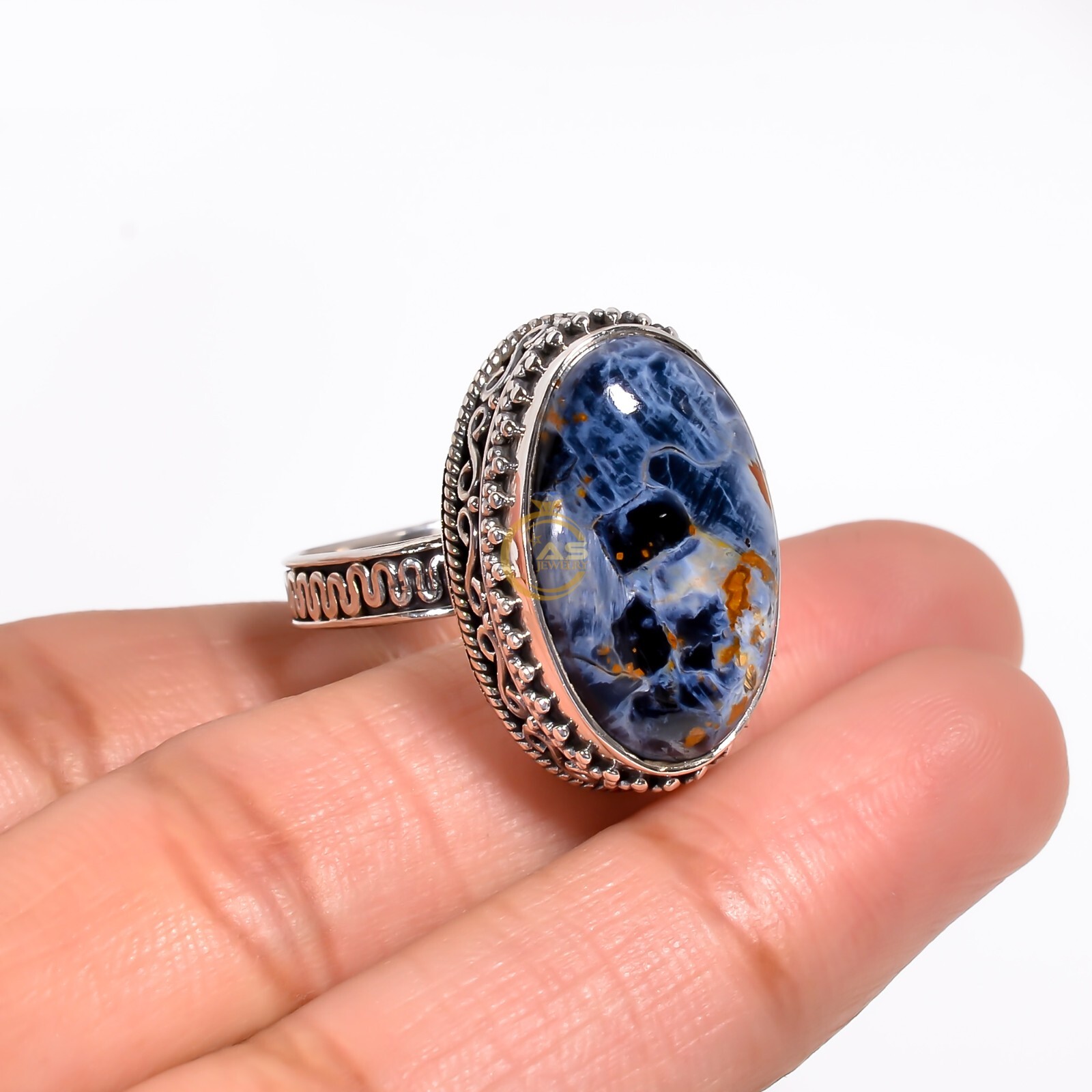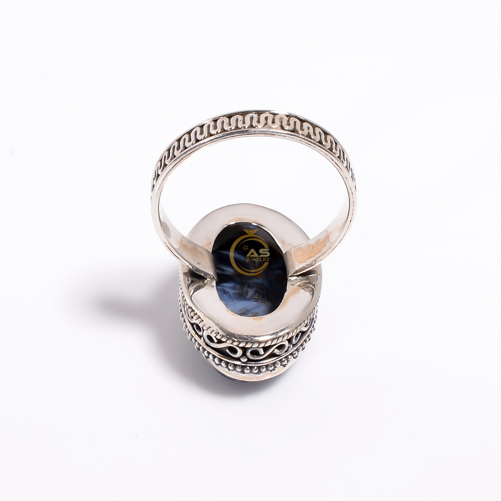 Pietersite Gemstone Ring Blue Stone 925 Sterling Silver Statement Boho Rings