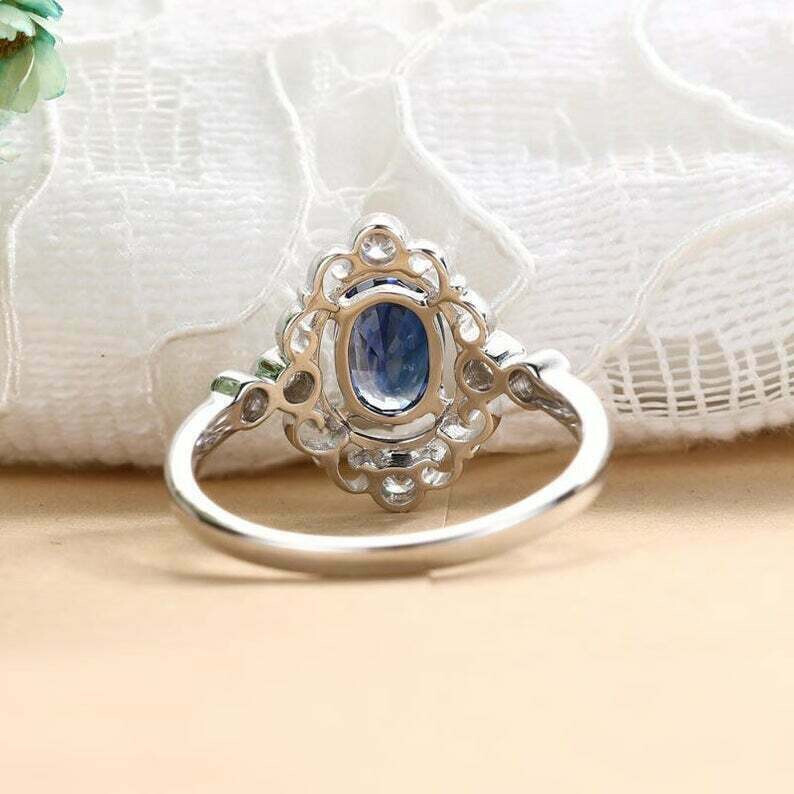 как выглядит 1.50Ctw Blue Sapphire Oval Womens Engagement Wedding Ring 925 Sterling Silver фото
