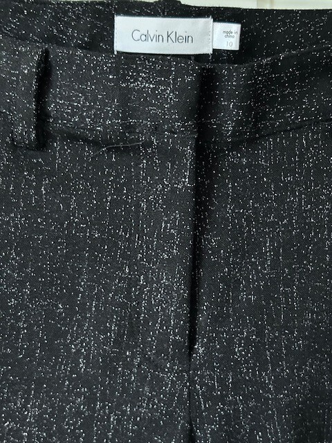 как выглядит Calvin Klein Pants Size 10 NWOT Black Gray Fleck Career Rayon Blend Skinny Legs фото