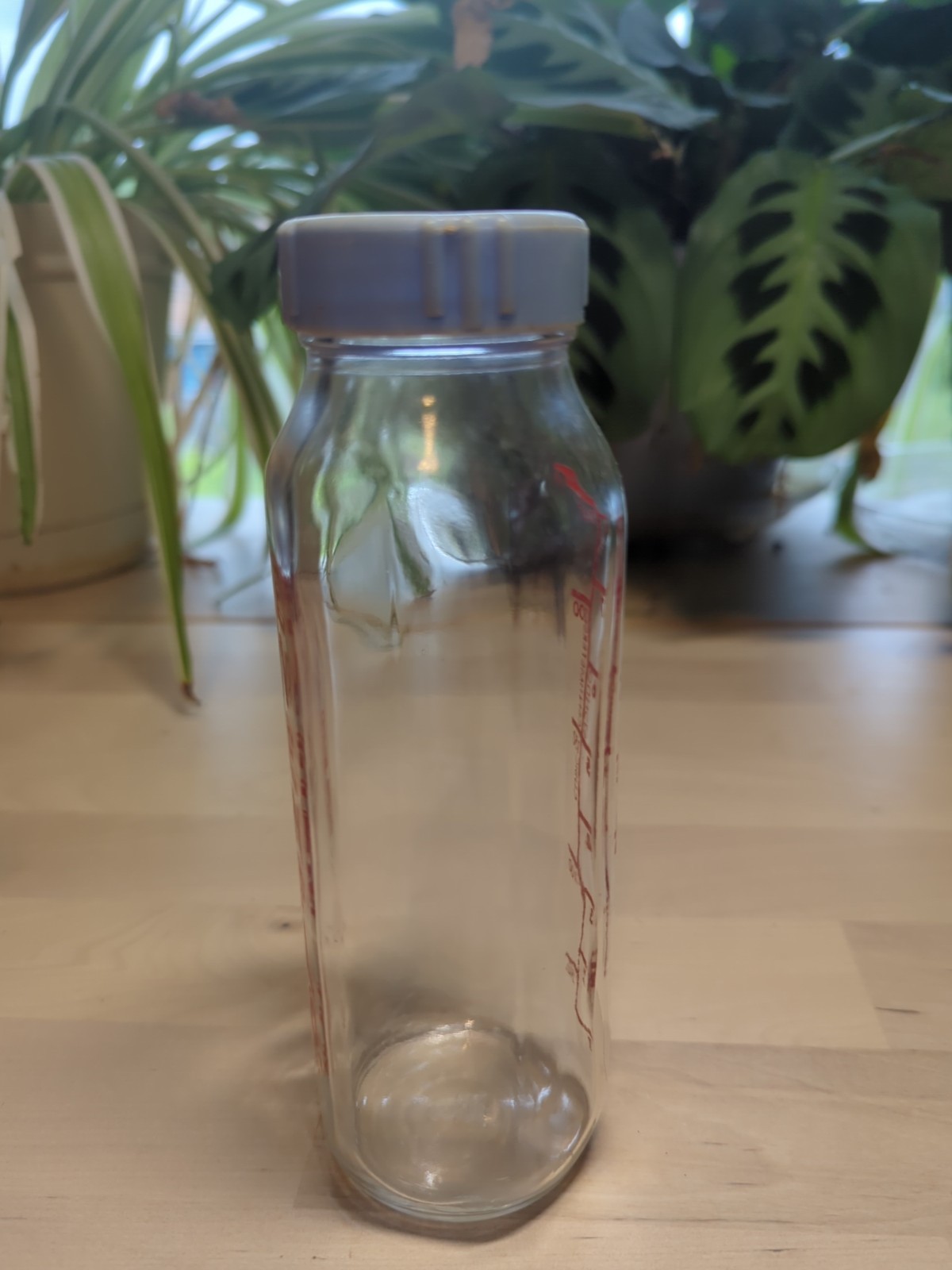 Vintage Evenflo 8oz Glass Baby Bottles Red Wording Ring Stopper No Nipple USA