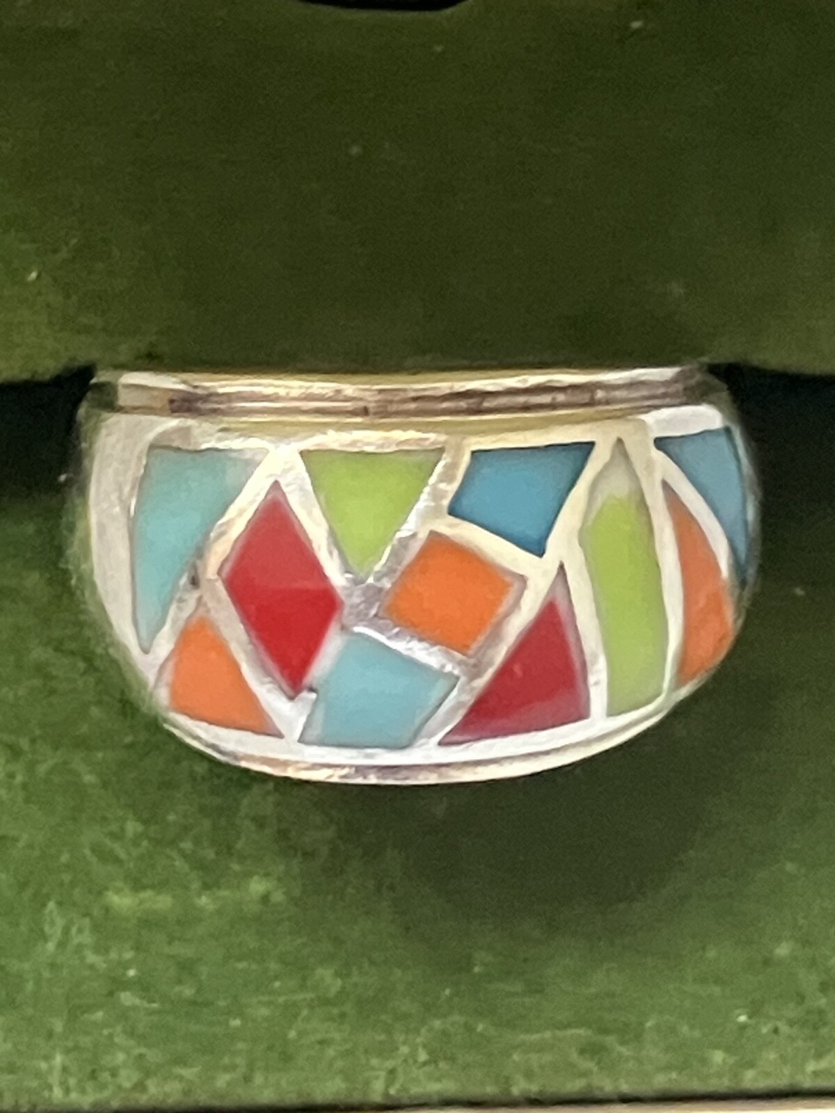 VINTAGE STAMPED 925 STERLING SILVER MUTI COLORED INLAY RING