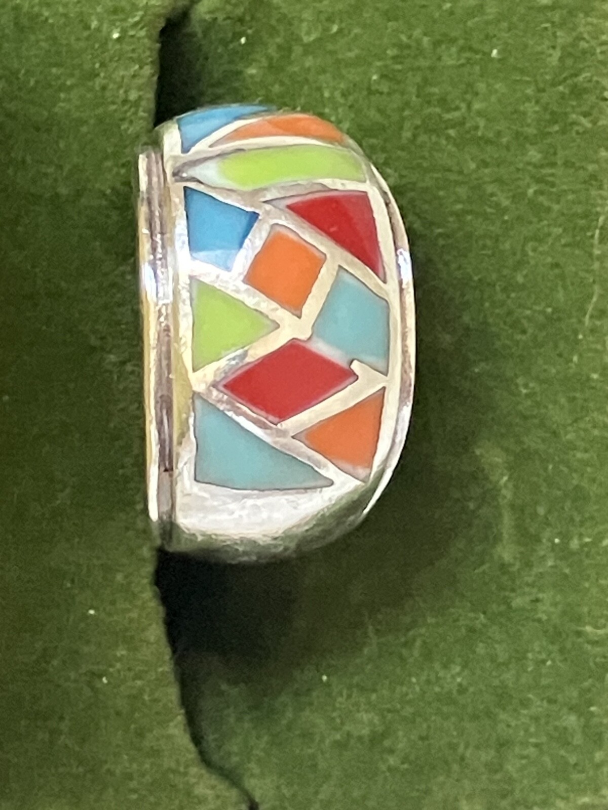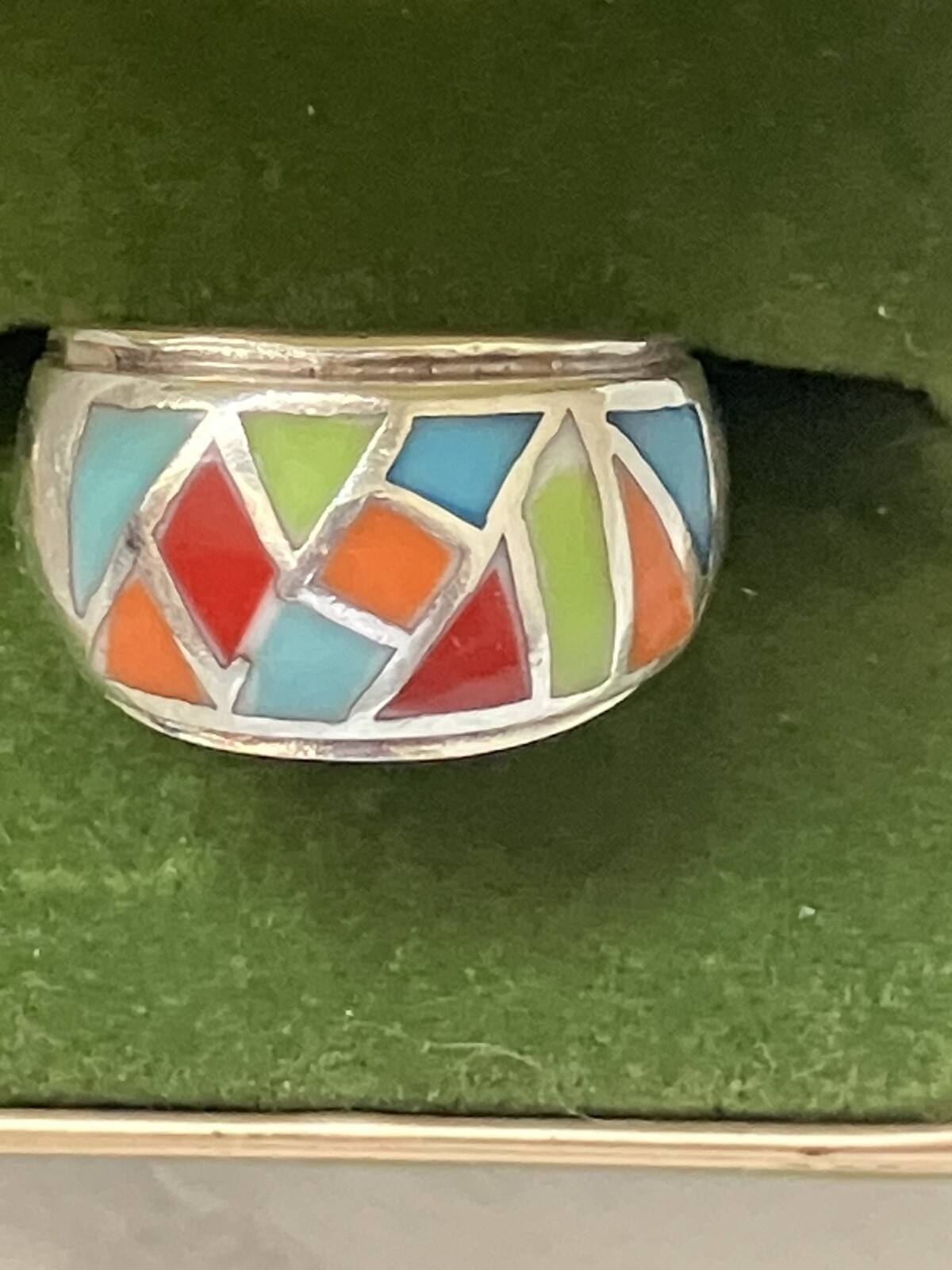 как выглядит VINTAGE STAMPED 925 STERLING SILVER MUTI COLORED INLAY RING фото
