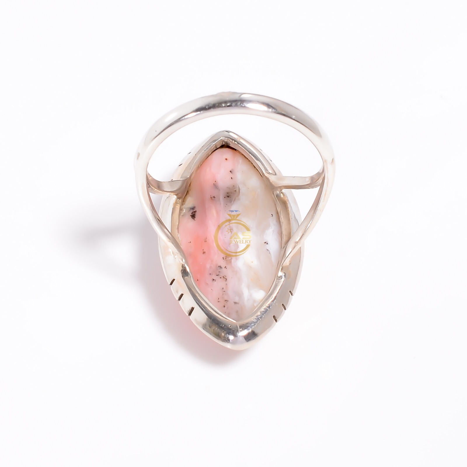Pink Opal Stone 925 Sterling Silver Handmade Statement Ring Jewelry Gift for Her