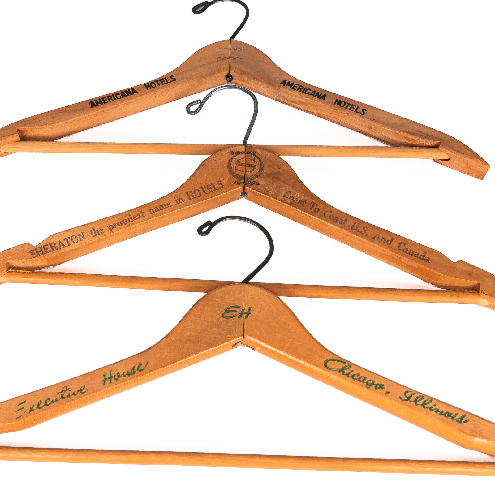 Vintage 3 Wood Advertising Hangers from 3 Hotels