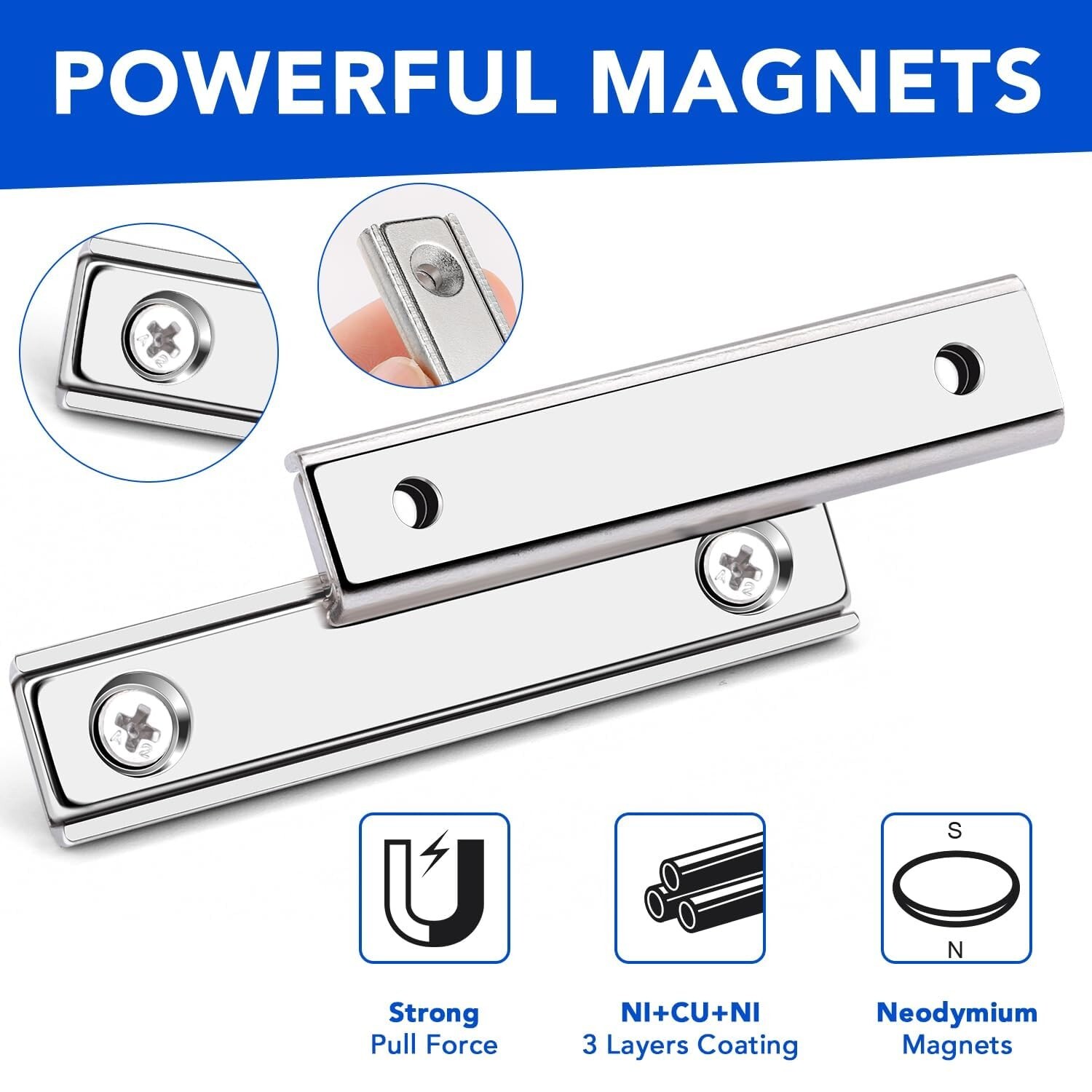 • Super Strong Neodymium Bar Magnets, 70lbs Heavy Duty Rectangular Pot Magnets ...