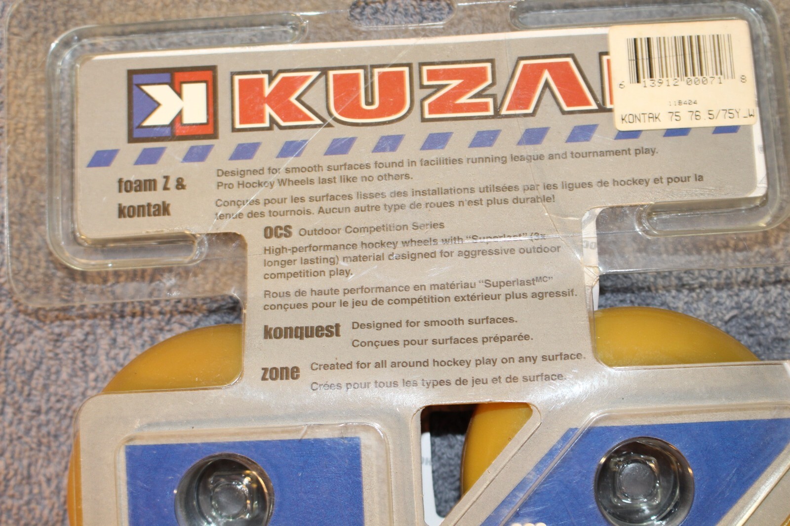 Kuzak 76.5mm 75A 4 -pack Yellow Inline Roller Hockey Wheels Indoor NEW