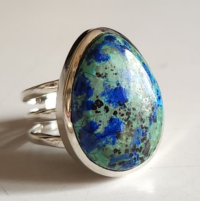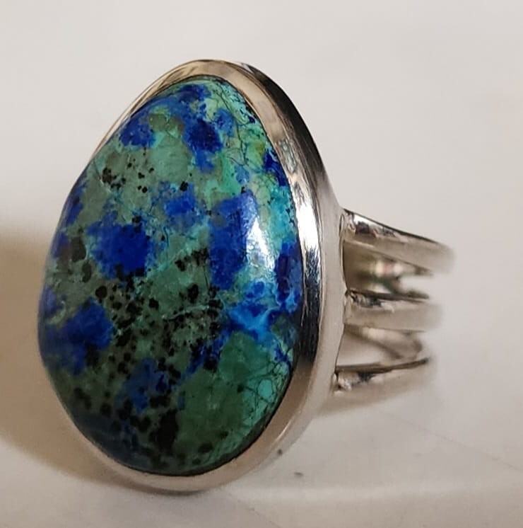 AZURITE MALACHITE NATURAL GEMSTONE 925 STERLING SILVER HANDMADE JEWELRY RING