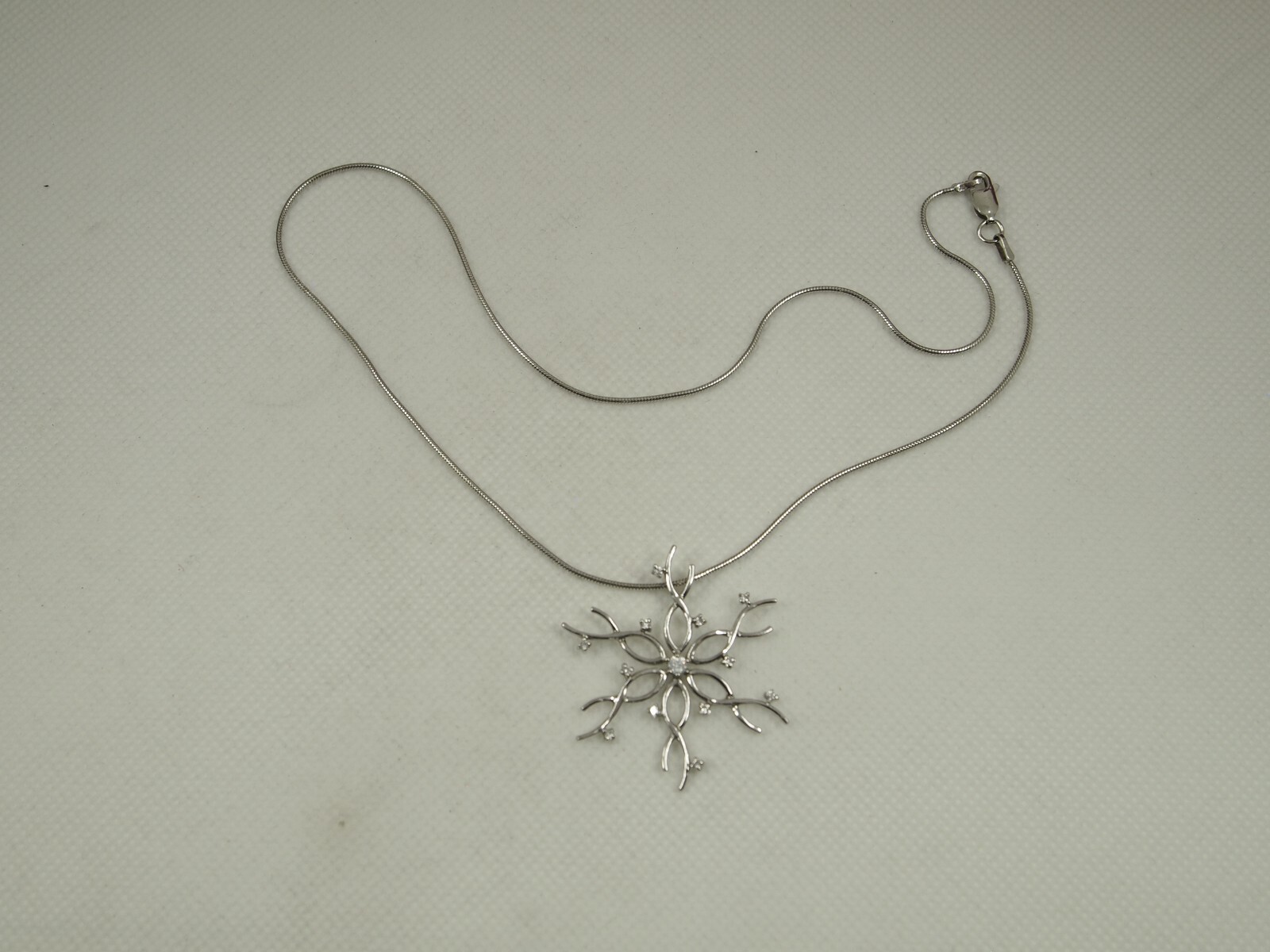 как выглядит Sterling Silver 925 Cubic Zirconia CZ Snowflake Pendant Necklace фото