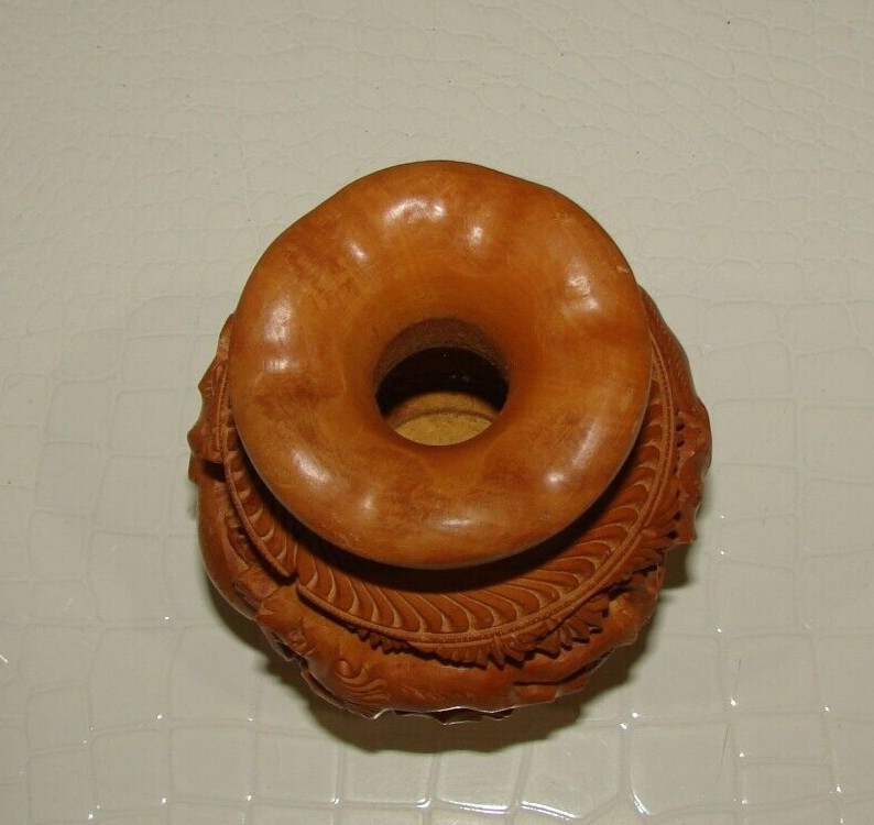 как выглядит Vintage Carved Wood Vase Elephant, Tiger, Deer, Lion Attack фото