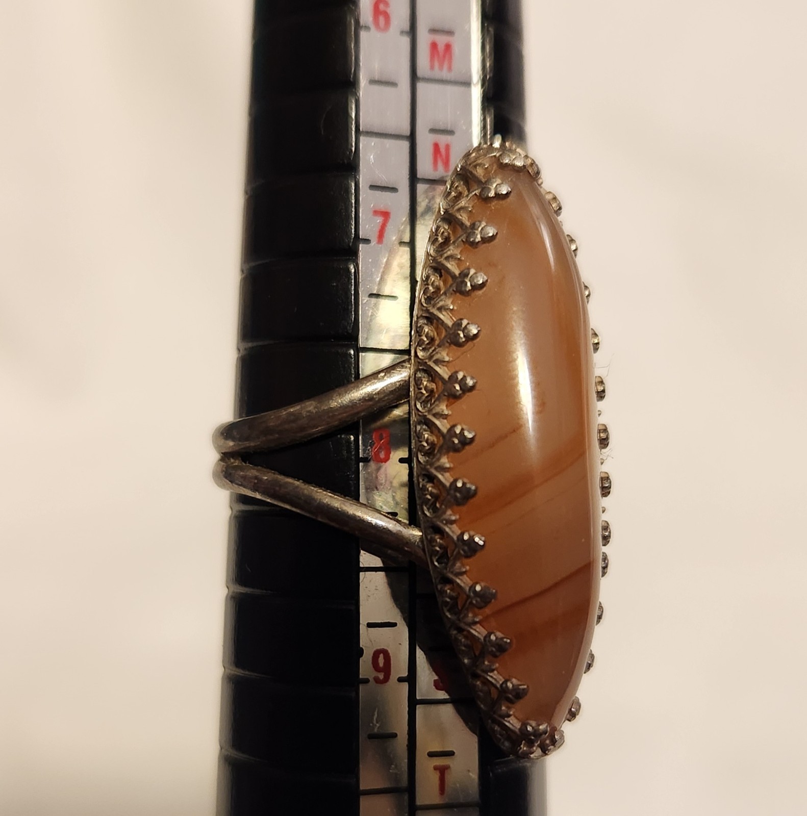 как выглядит Vintage Southwestern Style Sterling Agate Ring Size 8 фото