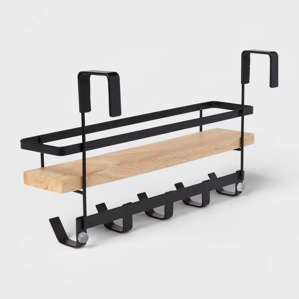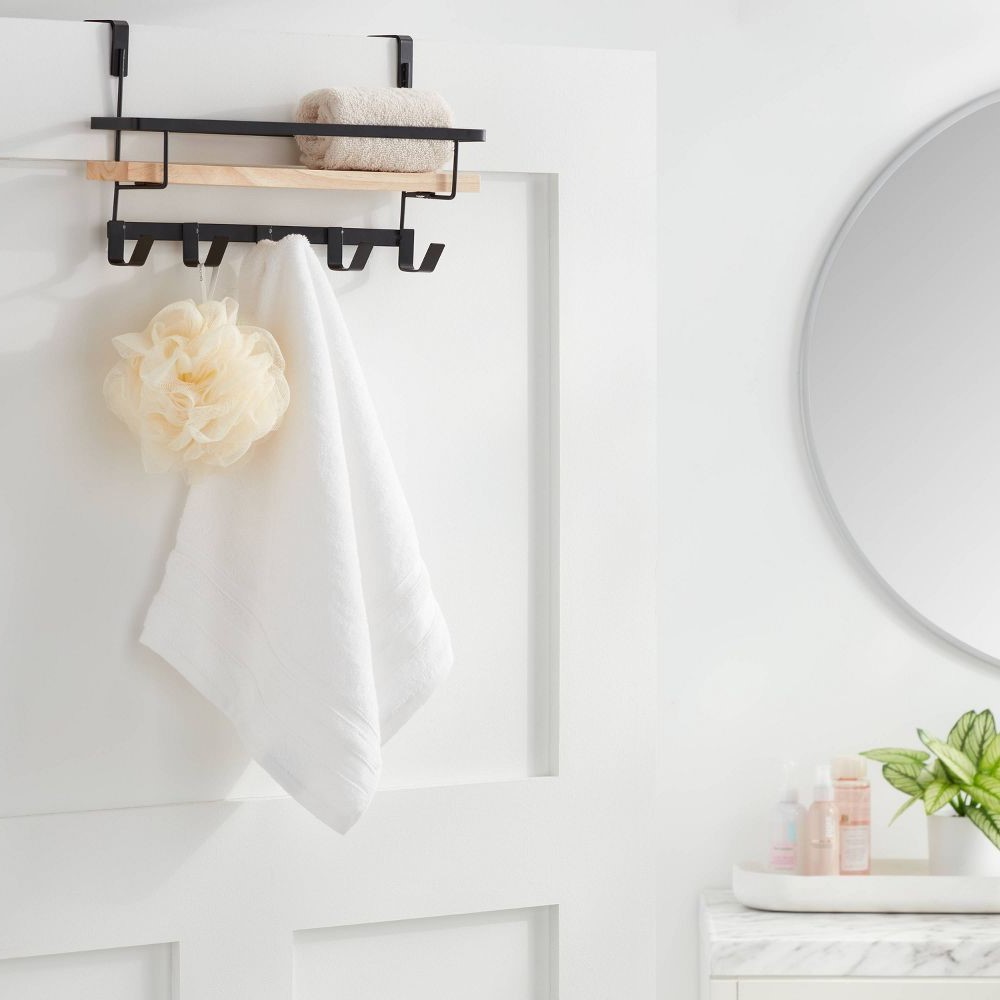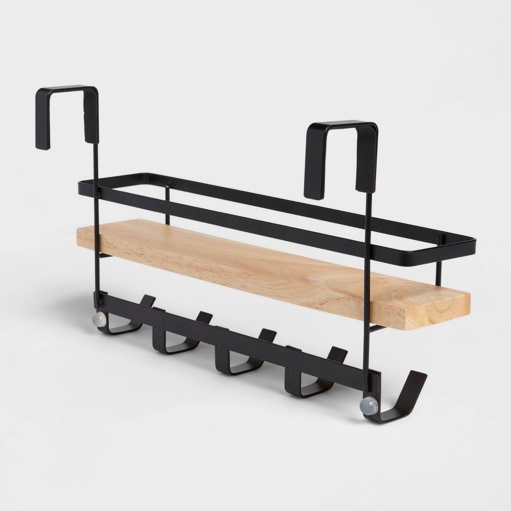 как выглядит Brightroom Storage Rack Display Shelf with Hooks Steel Bathroom Matte Black Wood фото