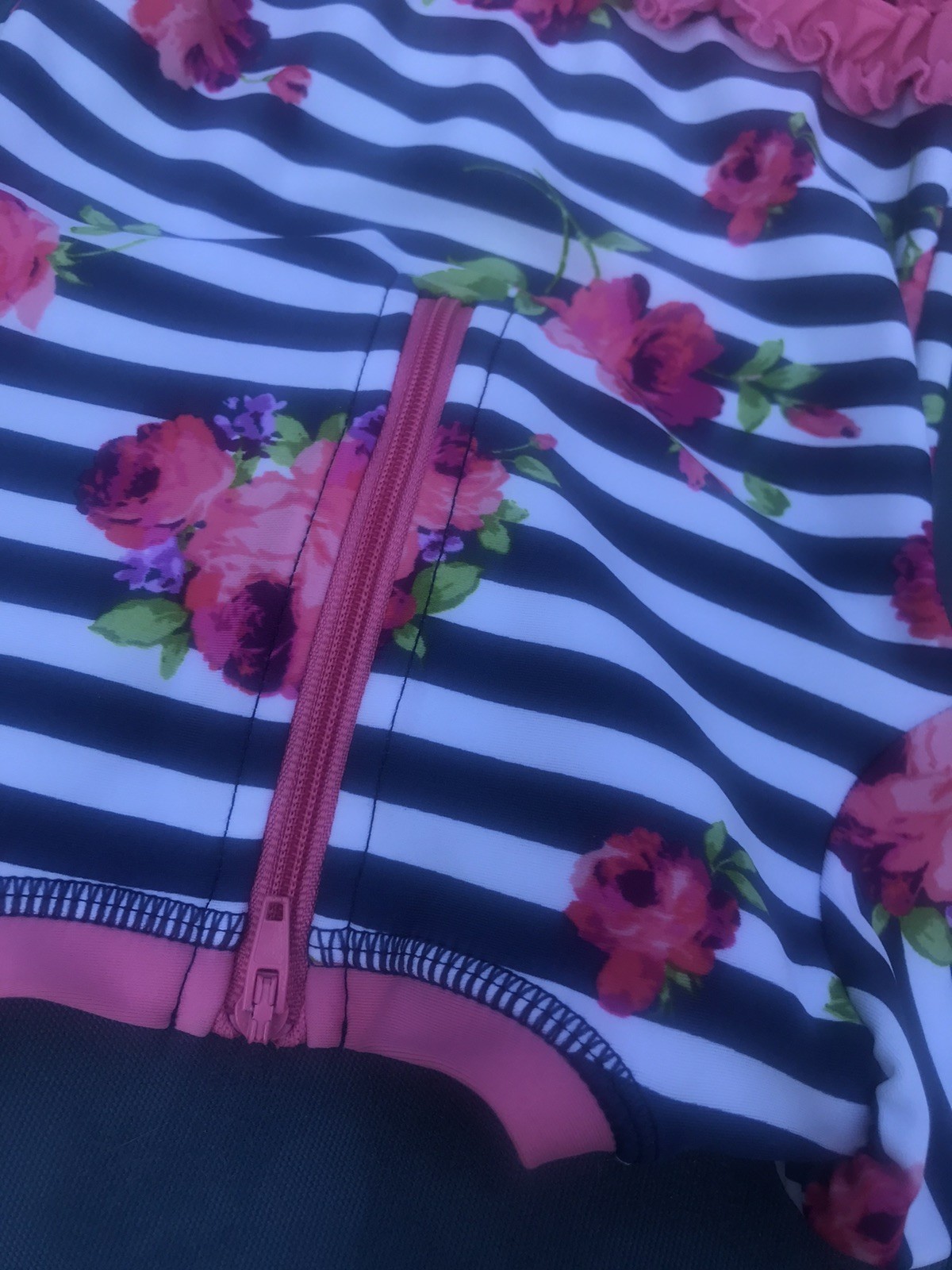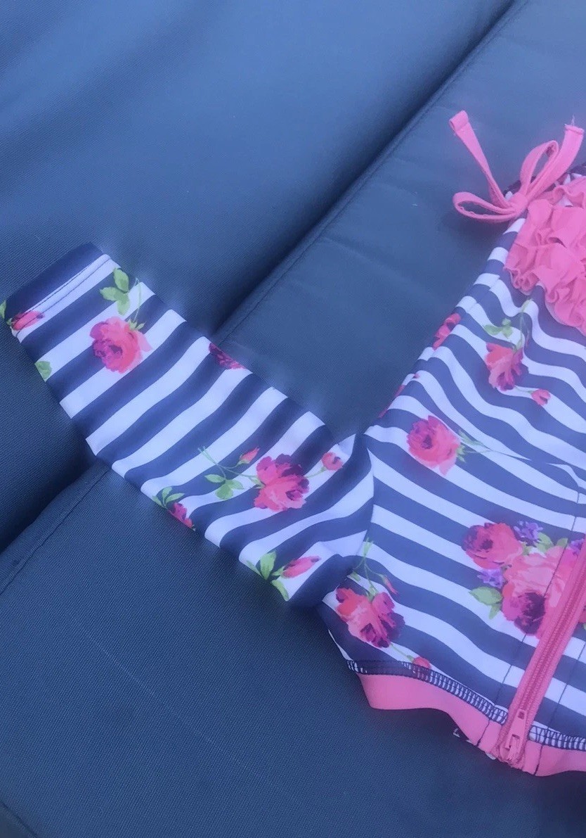 Ruffle Butts 6-9m Blue Pink Rose Seersucker Rash Guard Bow Zip Snap Swimsuit