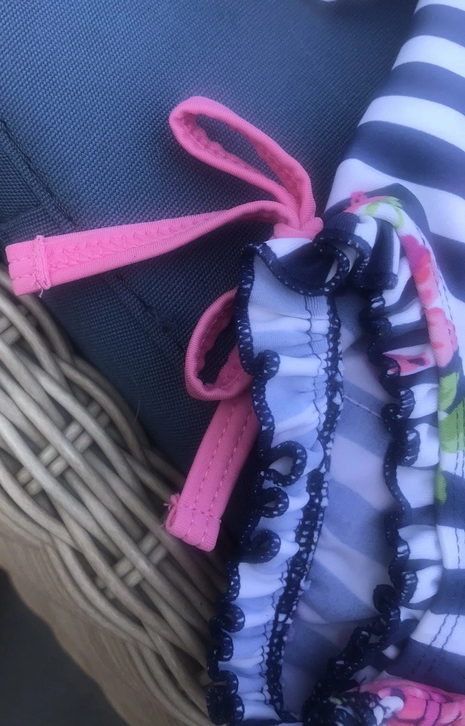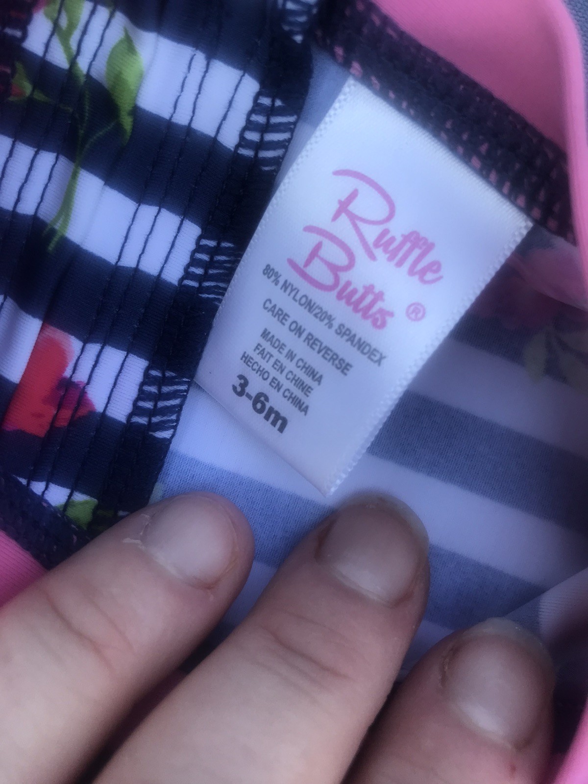 как выглядит Ruffle Butts 6-9m Blue Pink Rose Seersucker Rash Guard Bow Zip Snap Swimsuit фото