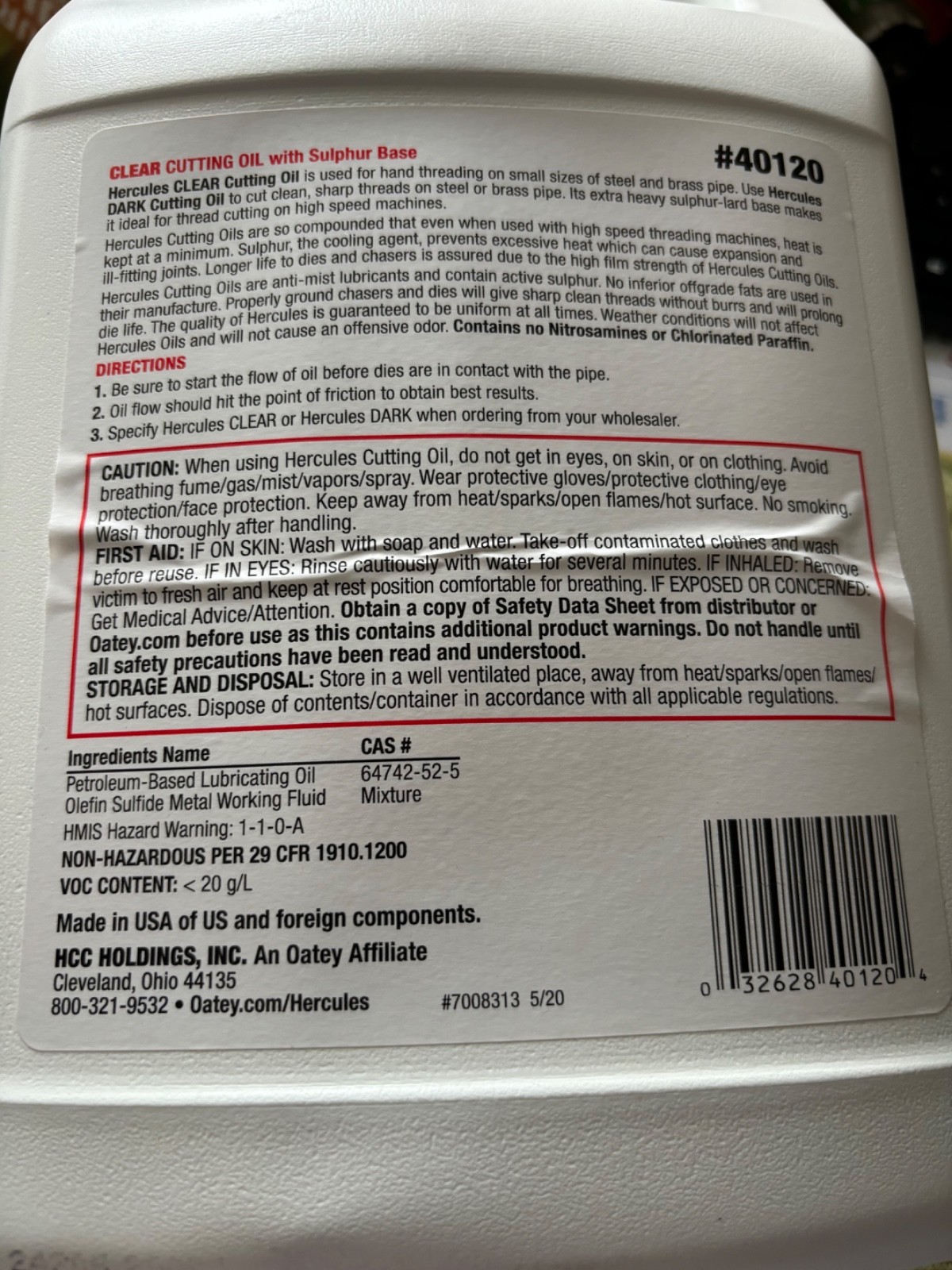 Hercules 40120 Clear Cutting Oil with Sulphur Base, 1 GALLON, Pipe Threading