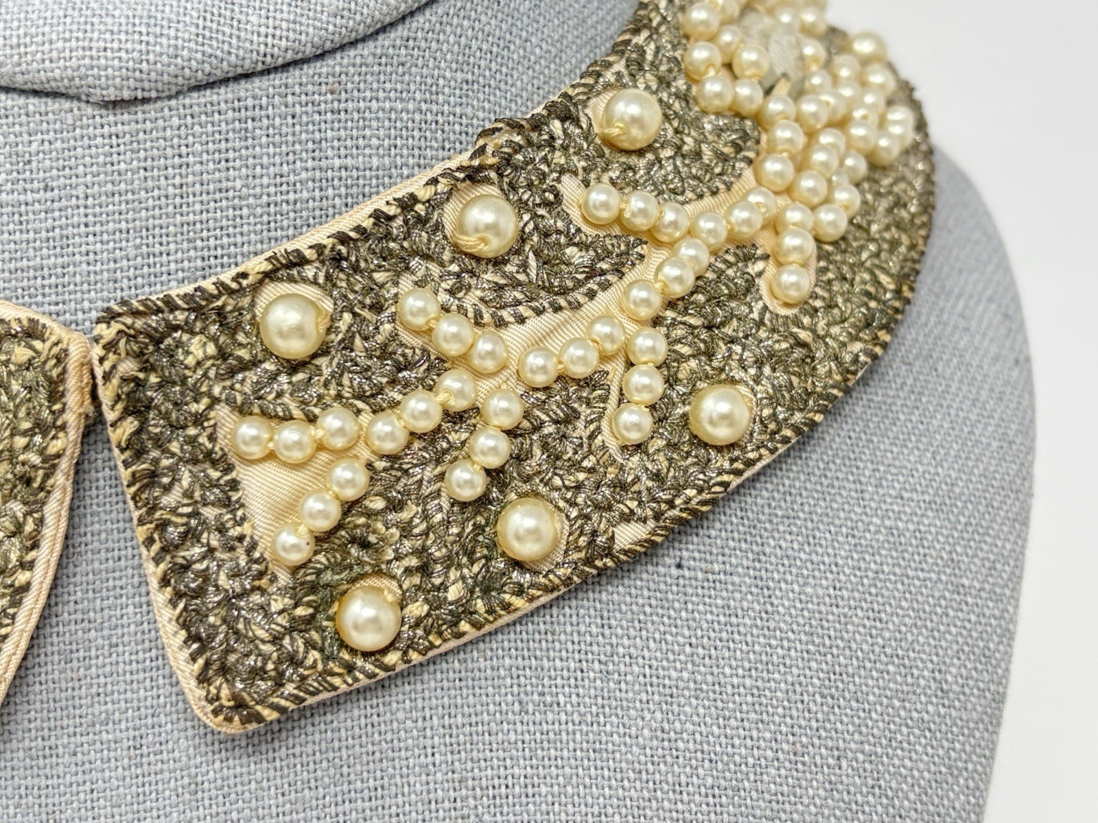 Vintage 50's Sir James Pearl Bead Embroidered Rhinestone Collar Sweater Accent