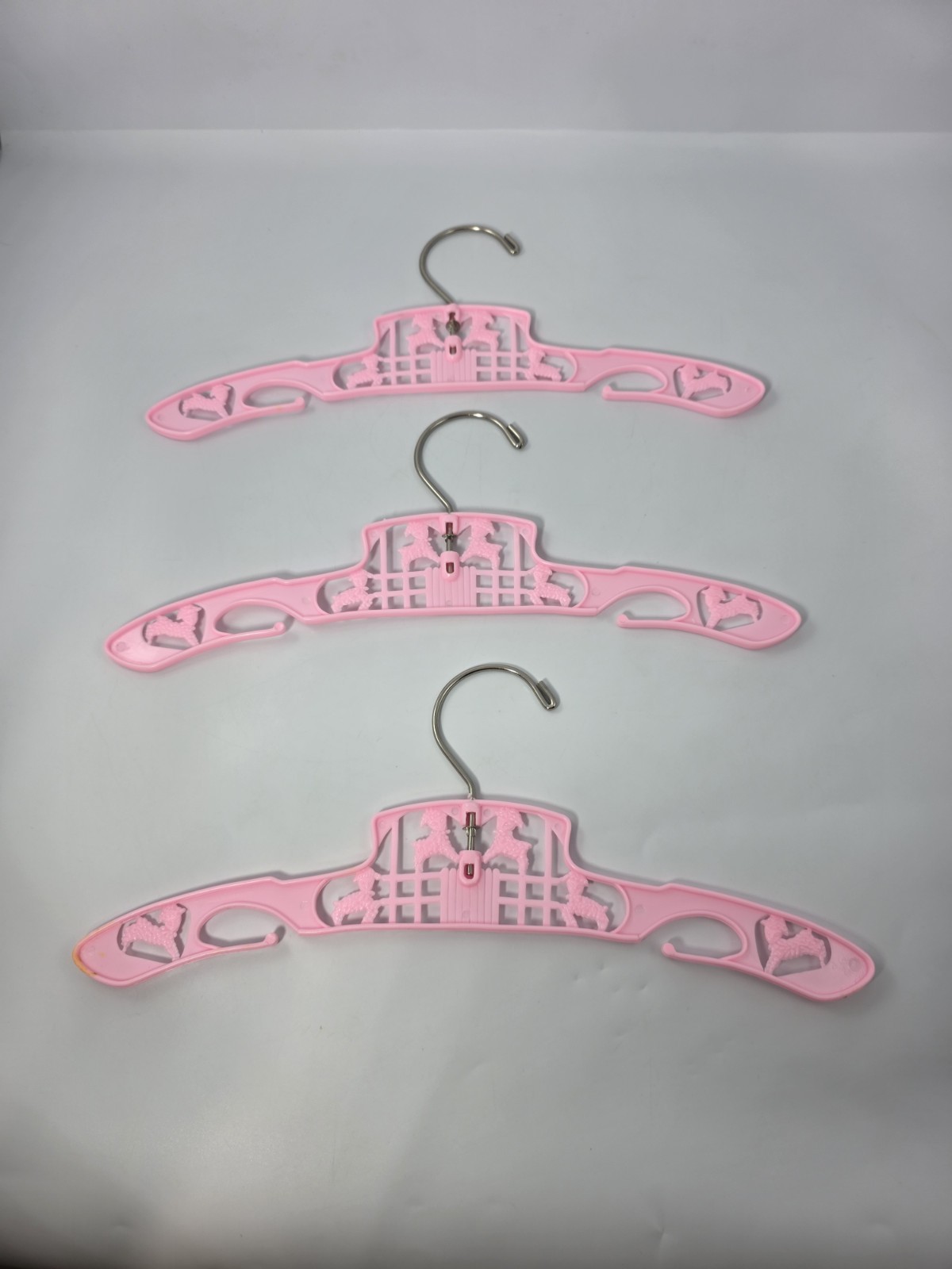 как выглядит KIDENTIALS 6 SWIVEL PINK BABY CLOTHES PLASTIC HANGERS IN BOX 1987 VINTAGE фото