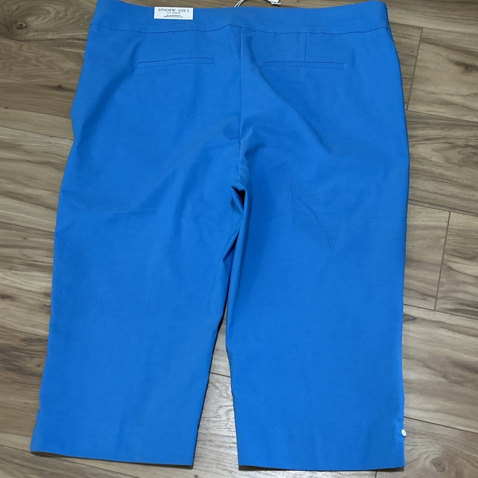 как выглядит Chicos Sz 16 Brigitte Slim Leg So Slimming Poolside Blue Rivet Capri Pullon NWT фото
