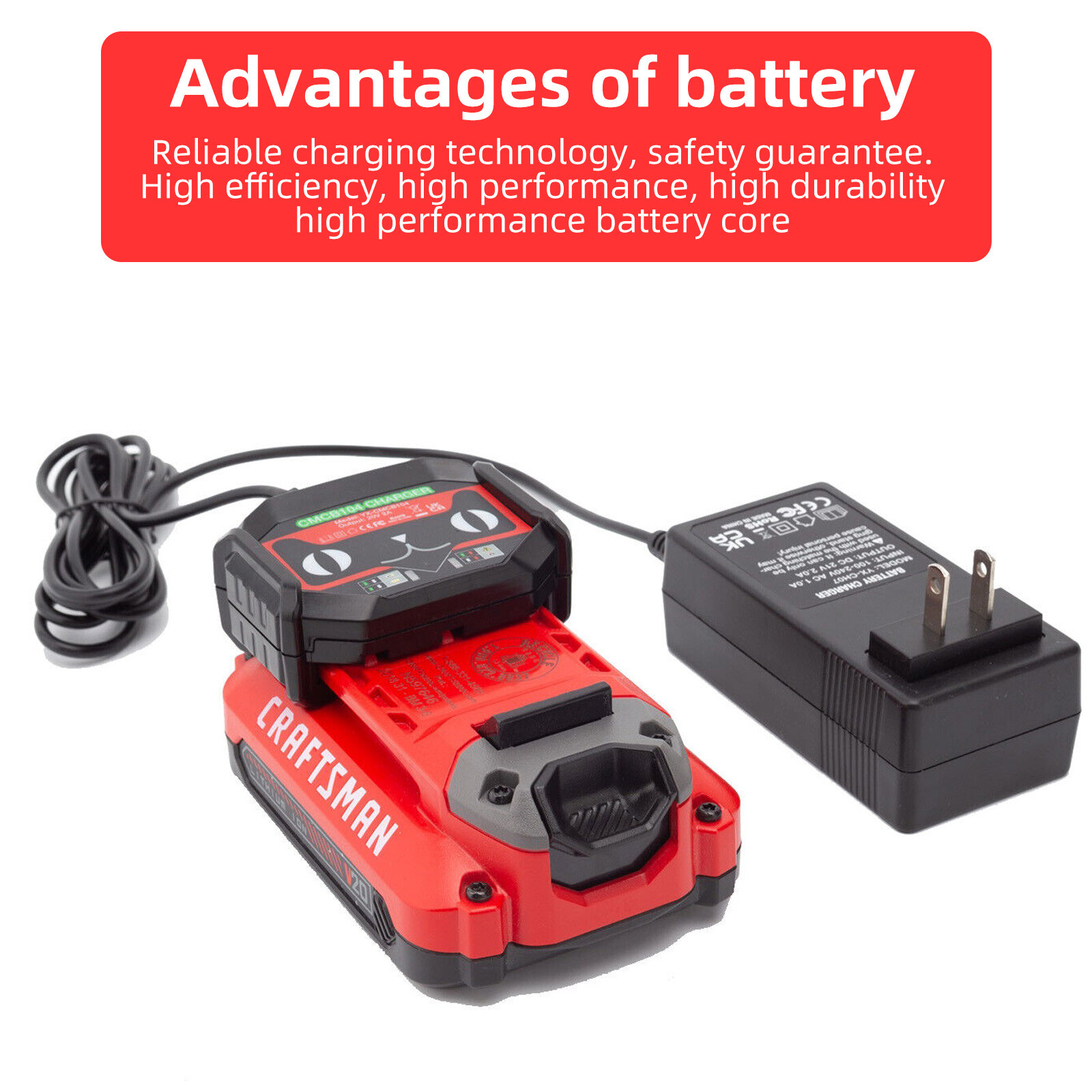 Replacement for Craftsman Original Charger Model 2: Craftsman v20 battery fast charger CMCB104