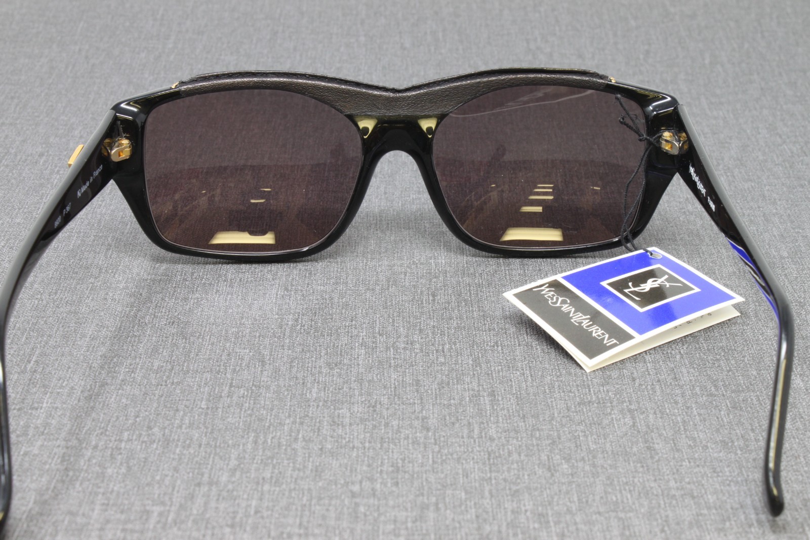 как выглядит Yves Saint Laurent Unisex Sunglasses Square Black Leather Trim Plastic Frame VTG фото