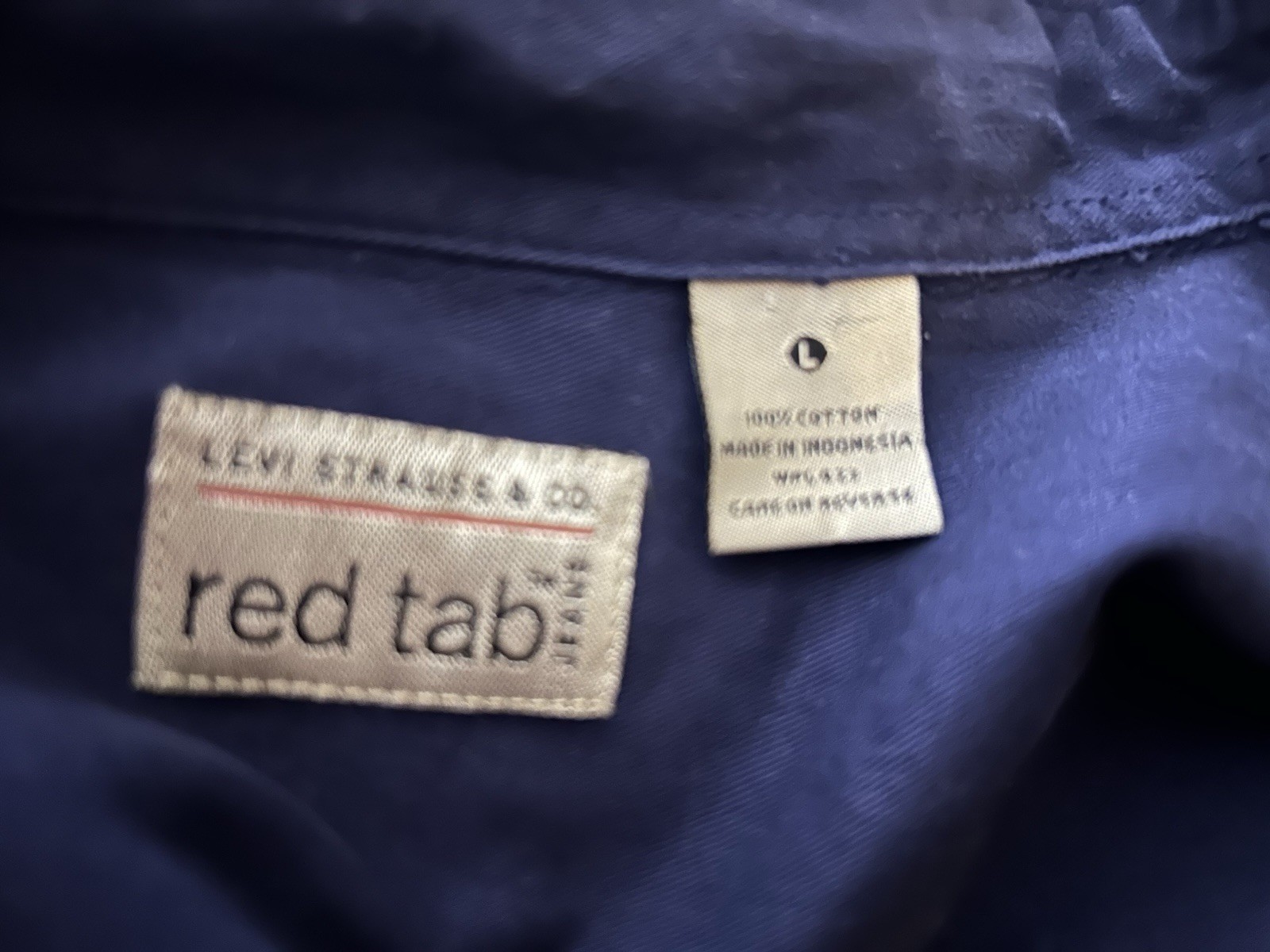 как выглядит Mens Large Levis Strauss Red Tab Navy Button Up L.S. CO Tag Cotton Shirt фото