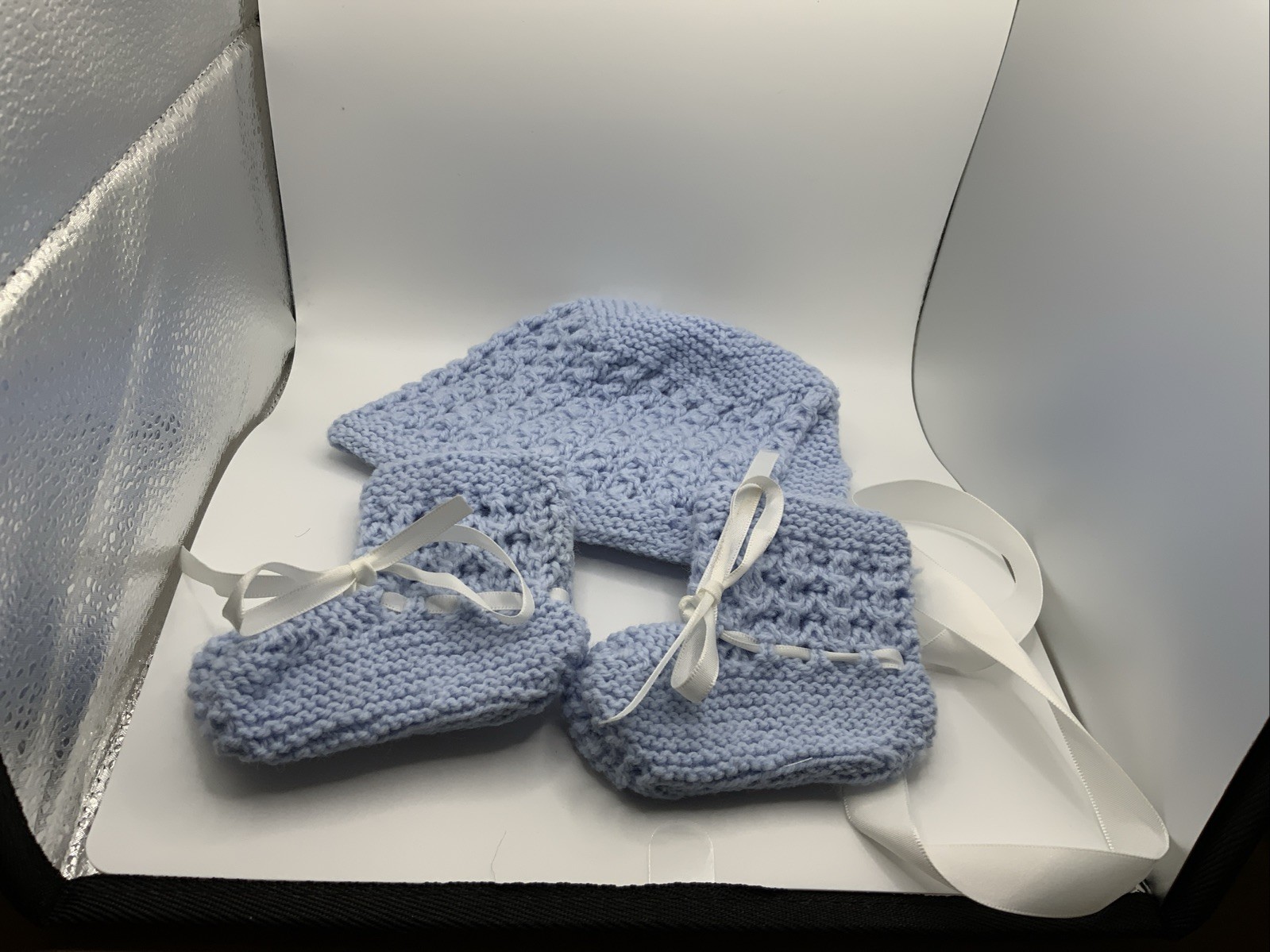 как выглядит Hand Knitted Newborn Blue Vintage Sweater Set фото