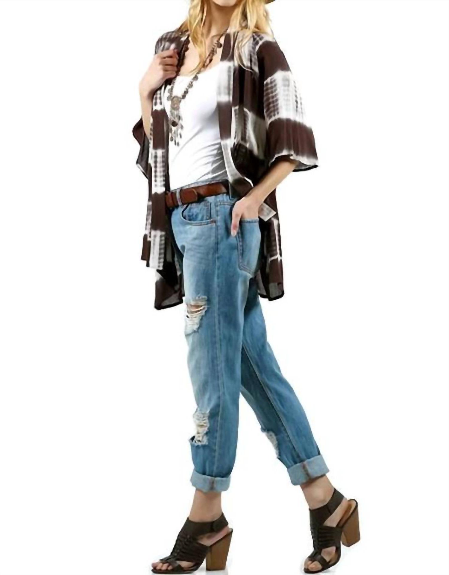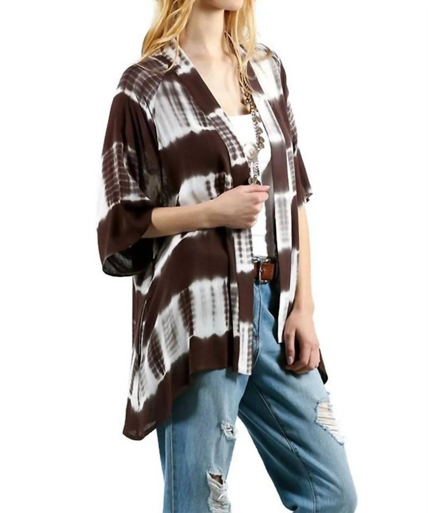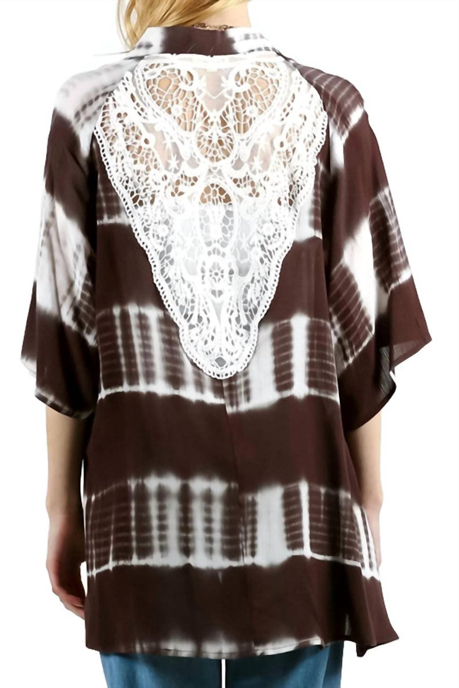 Kori Tie Dye Lace Crochet Back Kimono Olive
