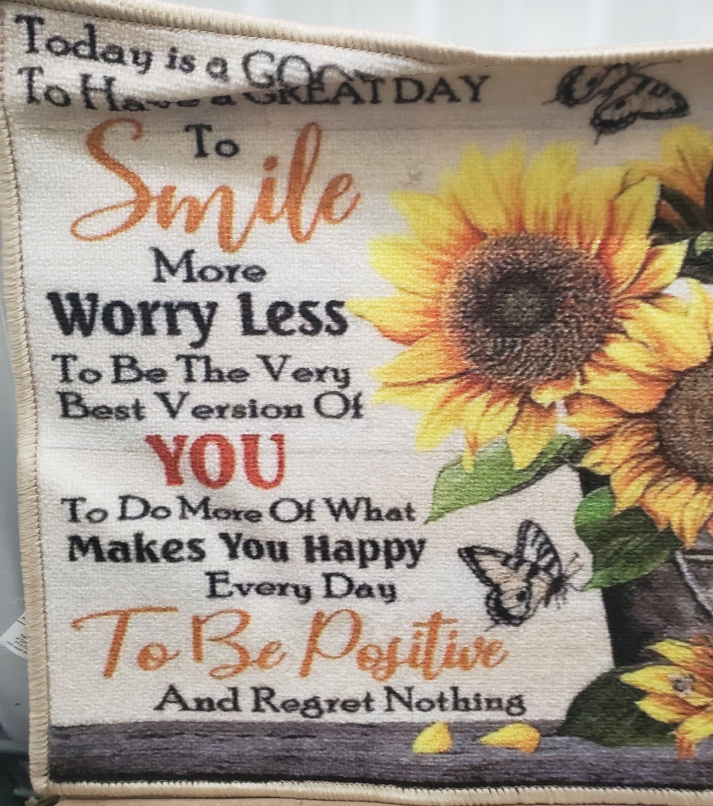 Printed Nylon Kitchen Rug 18x30 SUNFLOWERS,BUTTERFLIES POSITIVE MESSAGES,AL