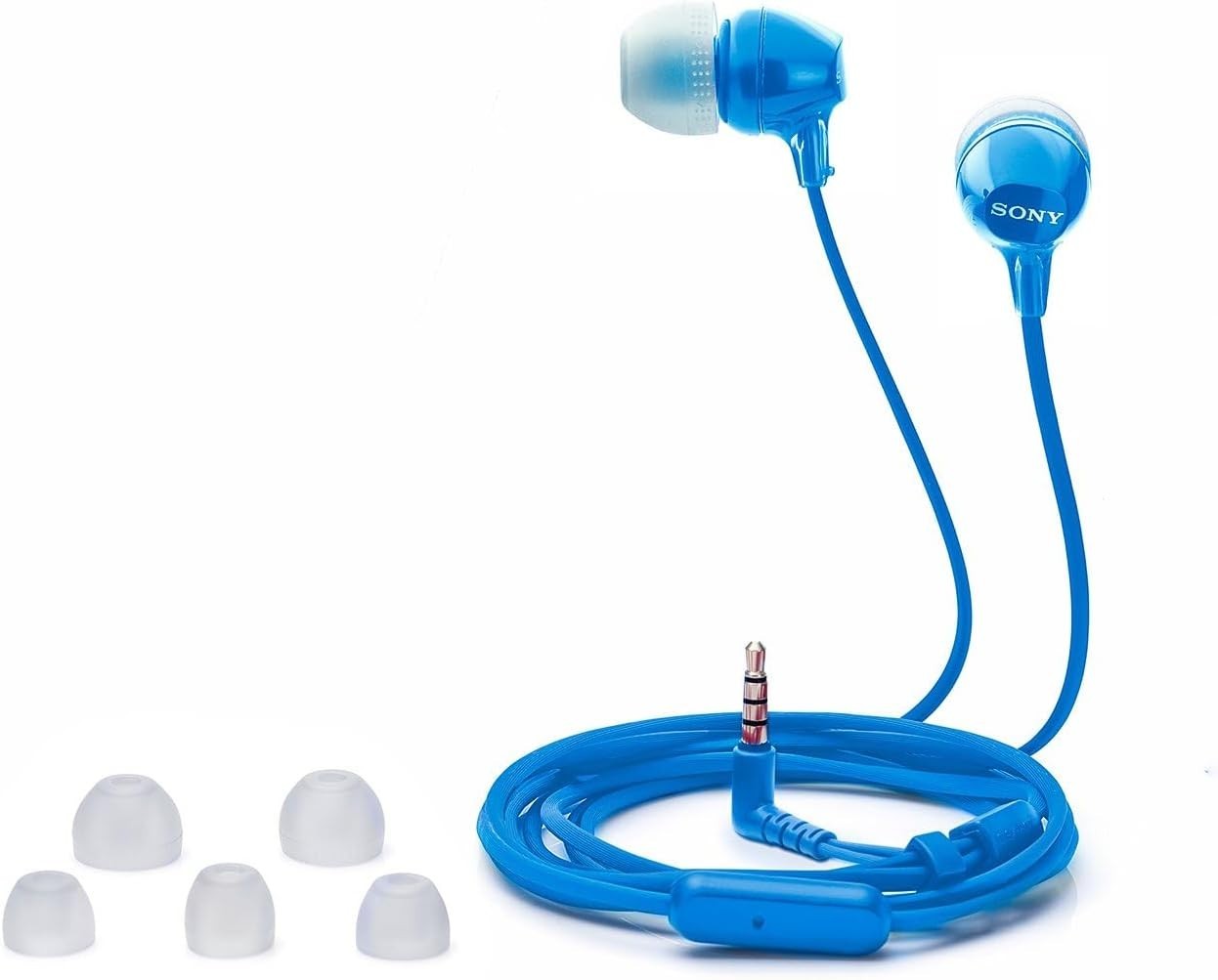 2-Pk SONY Genuine MDR-EX15AP In-Ear Headphone Dynamic Lightweight Mic BLUE