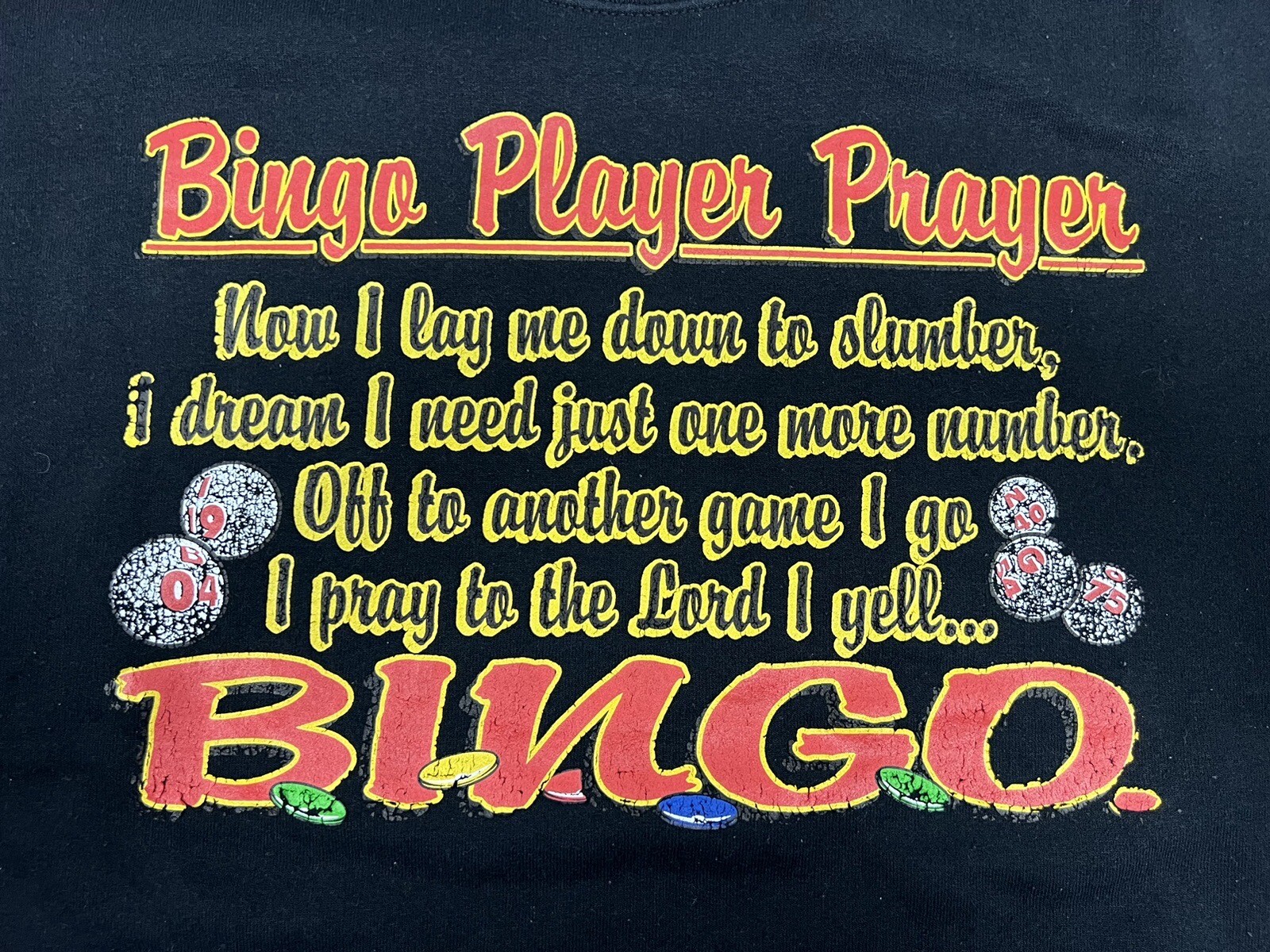 как выглядит VTG "Bingo Player Prayer" Bingo Graphic Front Spell Out Mens Crewneck Sweatshirt фото