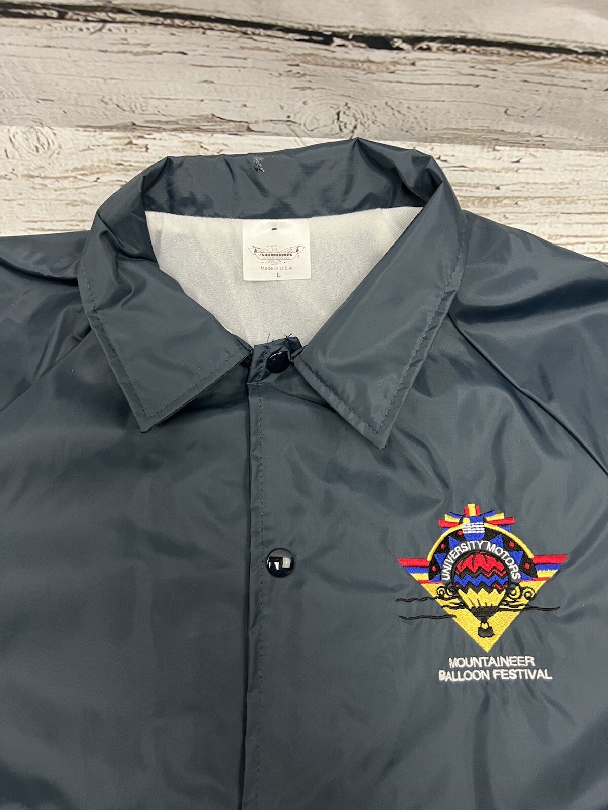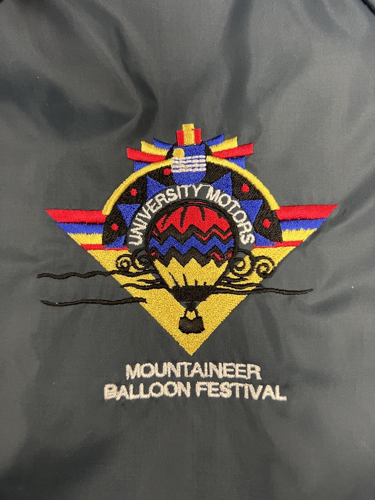VTG University Motors Mountaineer Balloon Festival Satin Button Up Bomber Jacket
