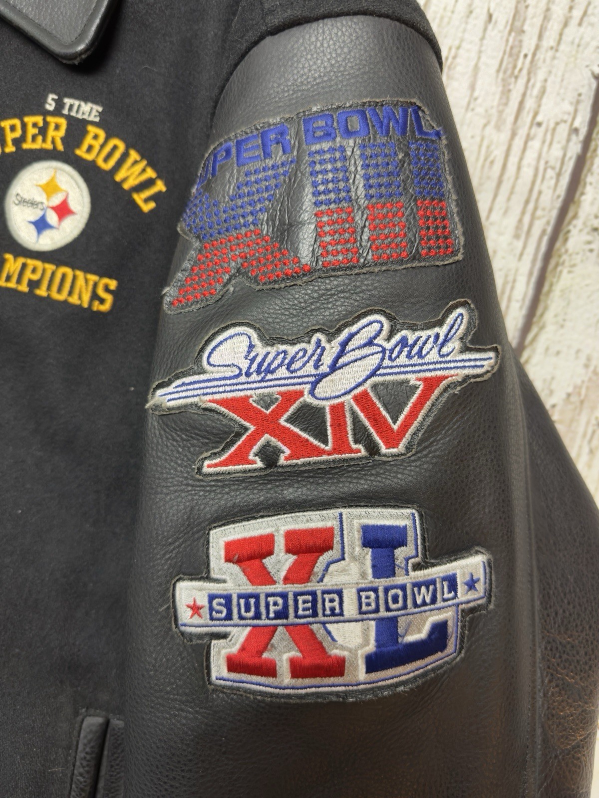 как выглядит Y2K Pittsburgh Steelers 5 Time Super Bowl Champions Wool Blend Bomber Jacket XL фото