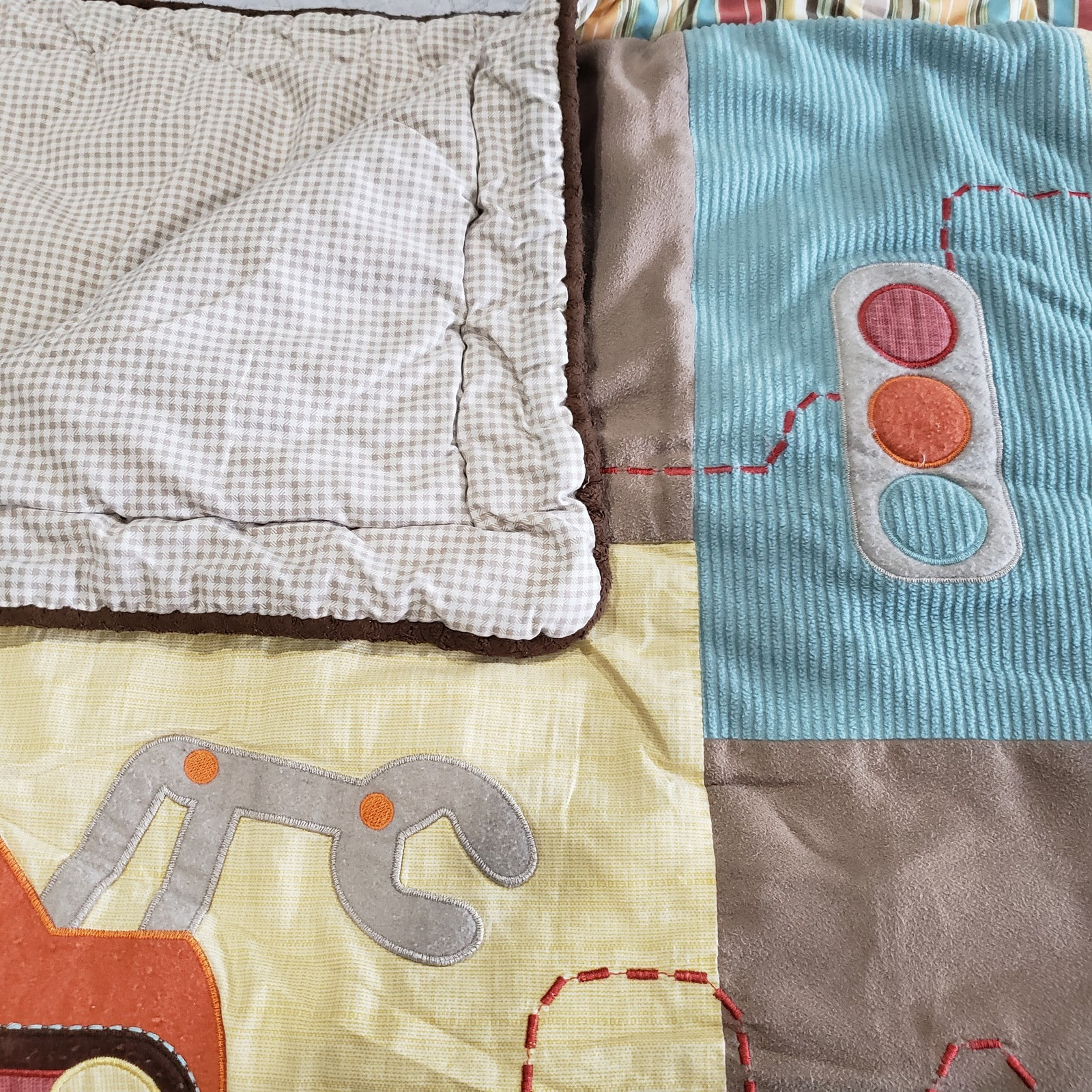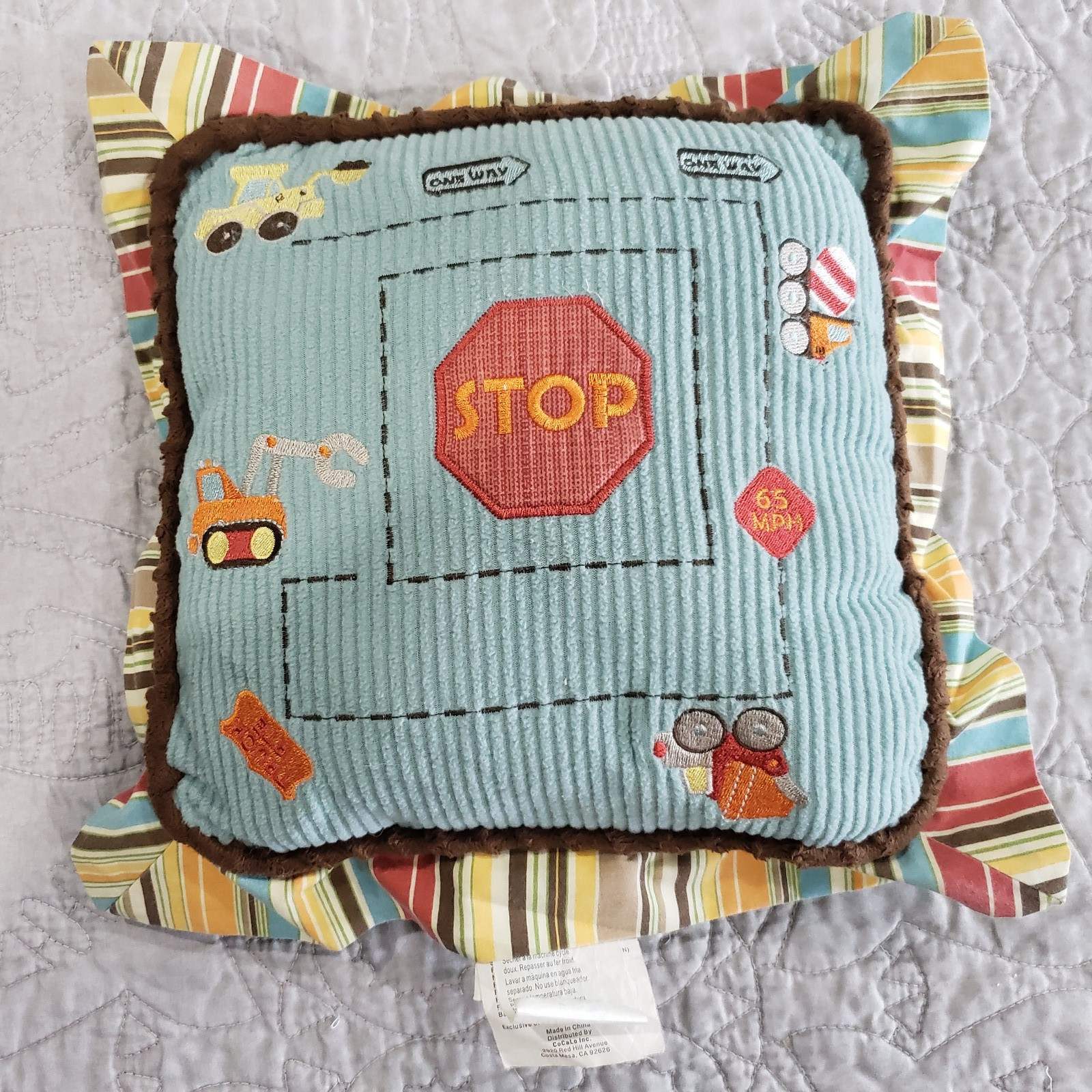 CoCoLo Baby Quilt Pillow 2pc Crib Set Cars Trucks Applique Boys Nursery Bedding