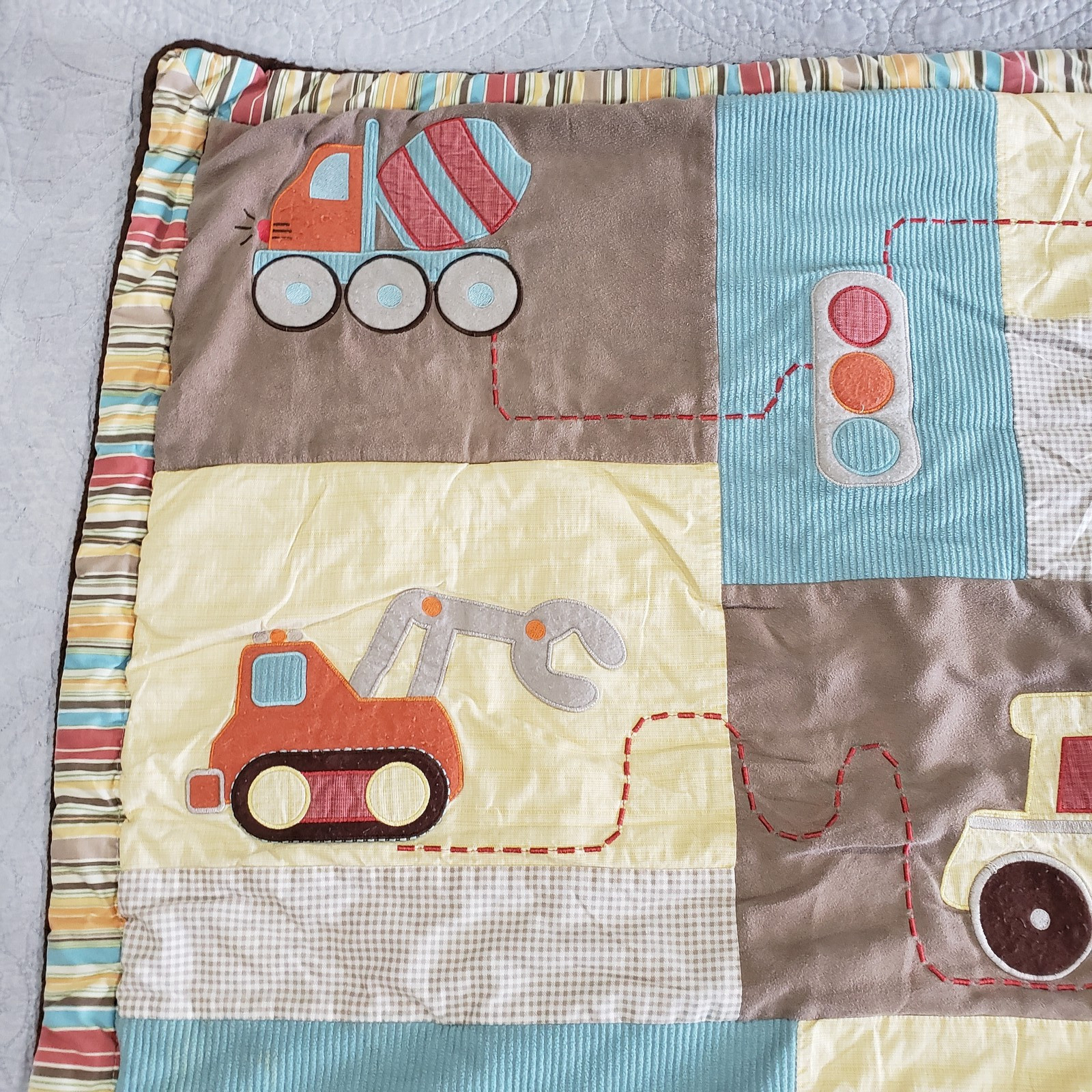 как выглядит CoCoLo Baby Quilt Pillow 2pc Crib Set Cars Trucks Applique Boys Nursery Bedding фото