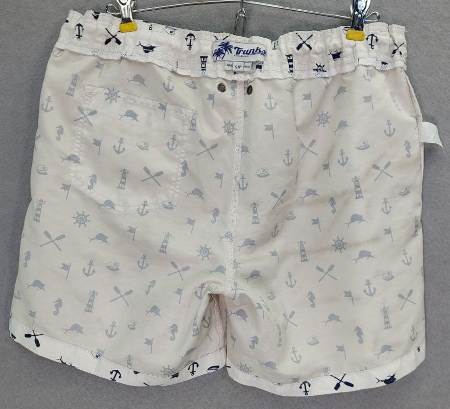 Trunks Surf Swim Co Shorts Board Beach Nautical Print 4 Pocket Men SMALL Navy