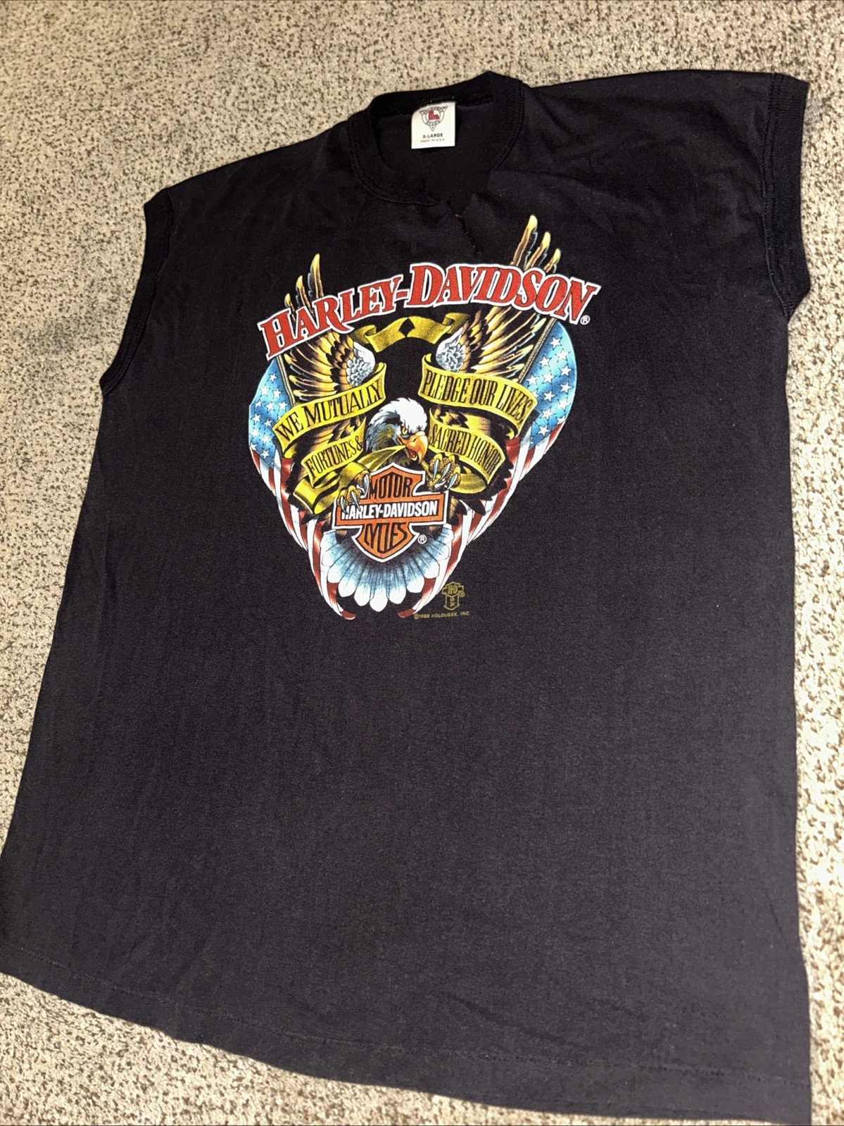 Vintage Harley Davidson Tee 1988 Holoubek Eagle Pledge Men s XL Sleeveless...