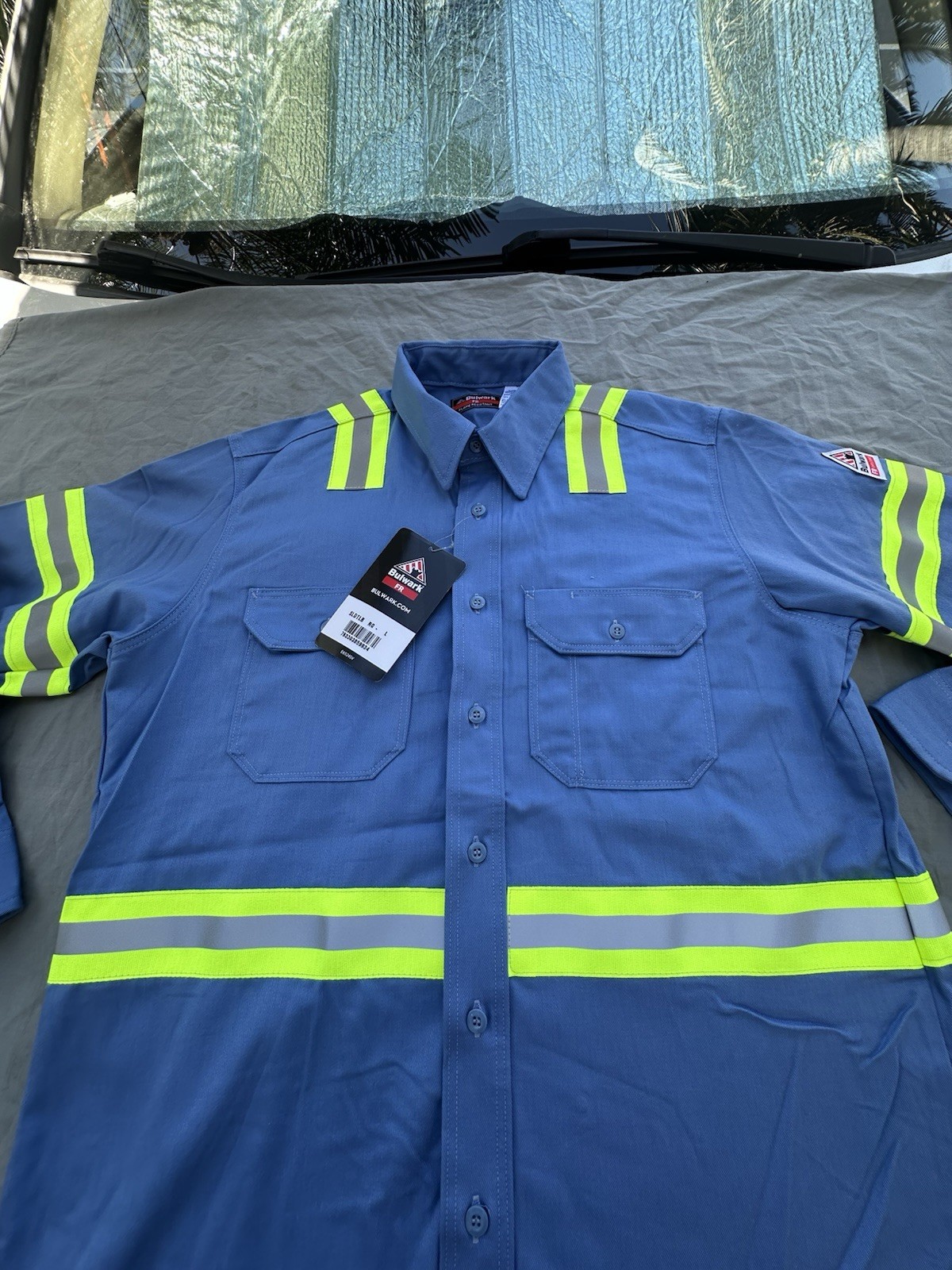 2 Bulwark FR CAT 2 Hi Visibility Cotton Work Shirts 8.6 ATPV Large Reg SLDTLB4
