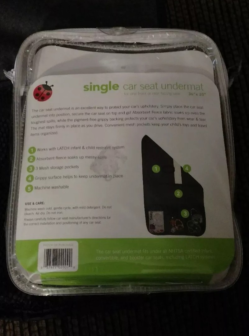 Sassy Single Car Seat Undermat 36 X 20 Absorbs Spills 3 Storage Compartments