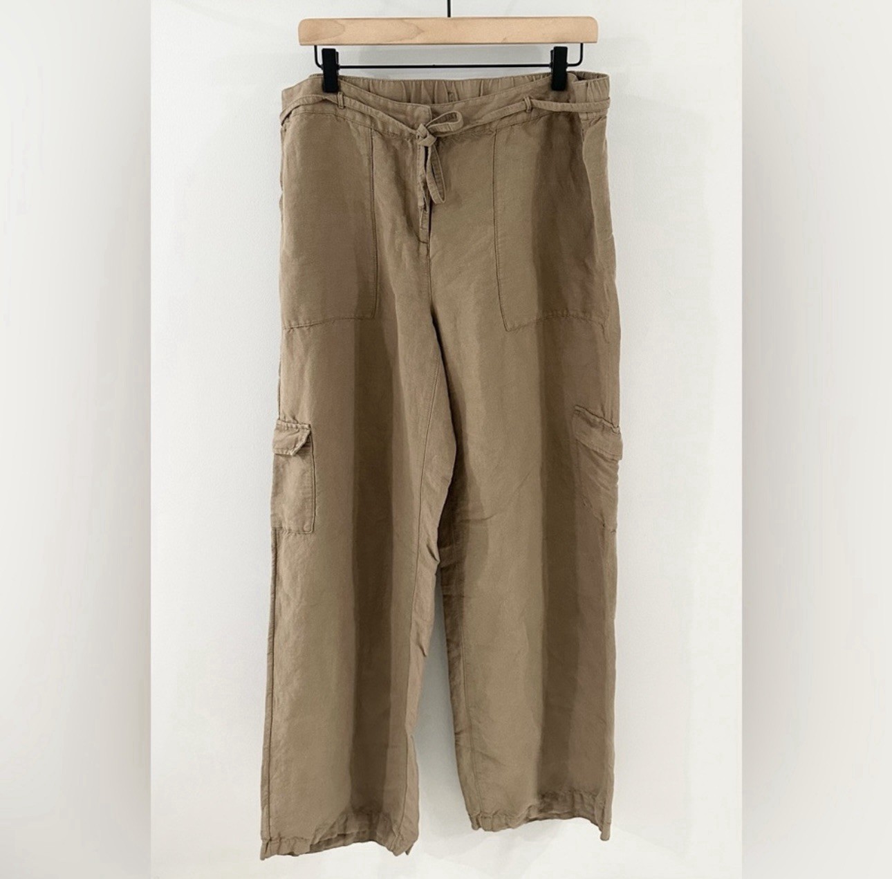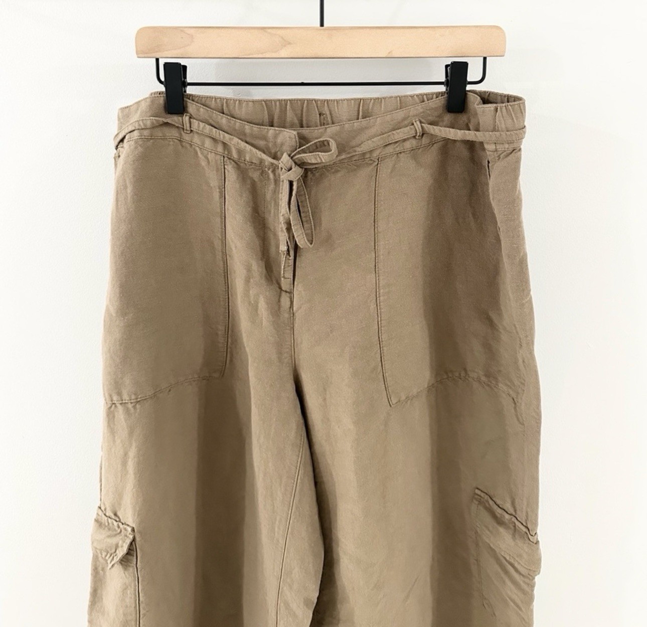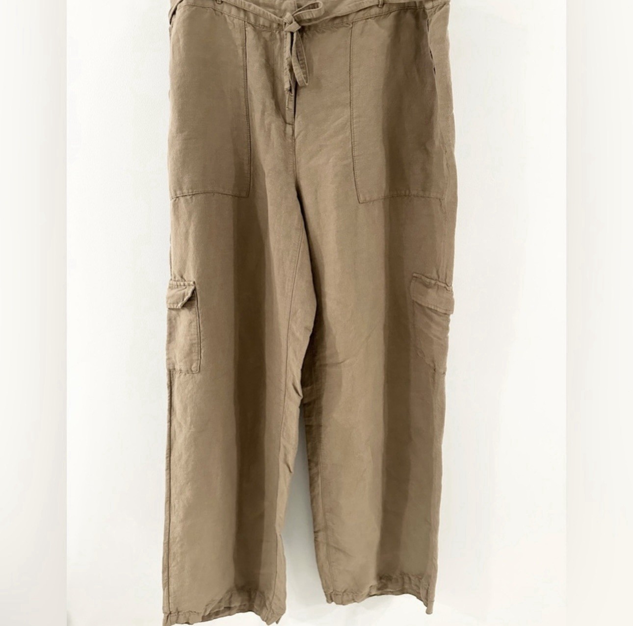 как выглядит J. Jill Linen Rayon Wide Leg Cargo Pants Coconut Shell Size 16 Tall фото
