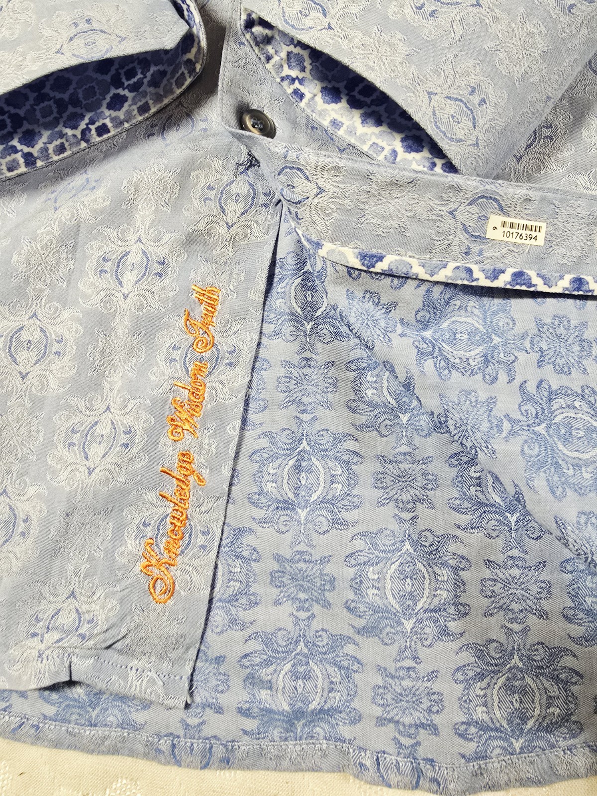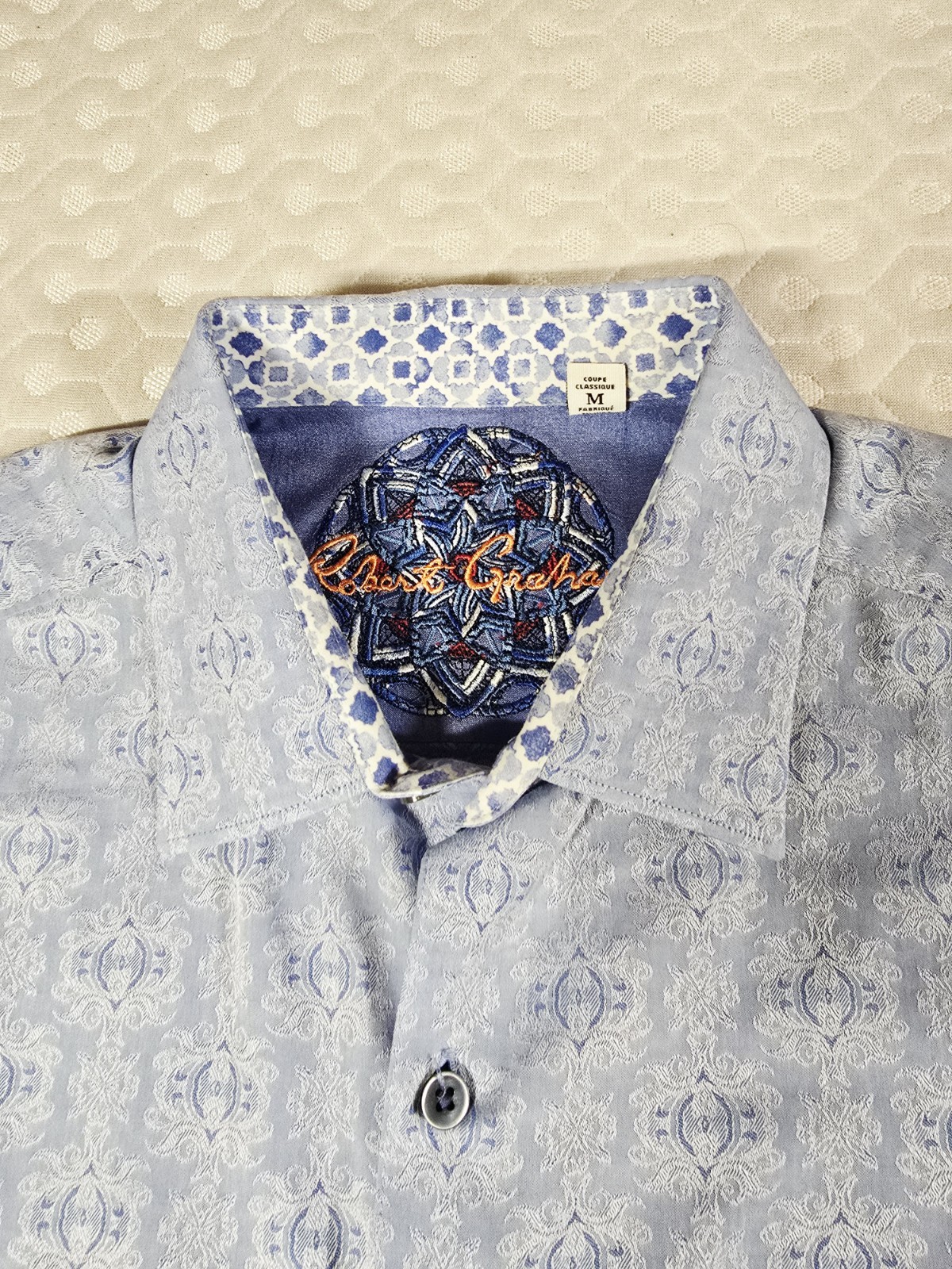 Robert Graham Men's Medium Blue Geometric Print Flip Cuff Long Sleeve Shirt