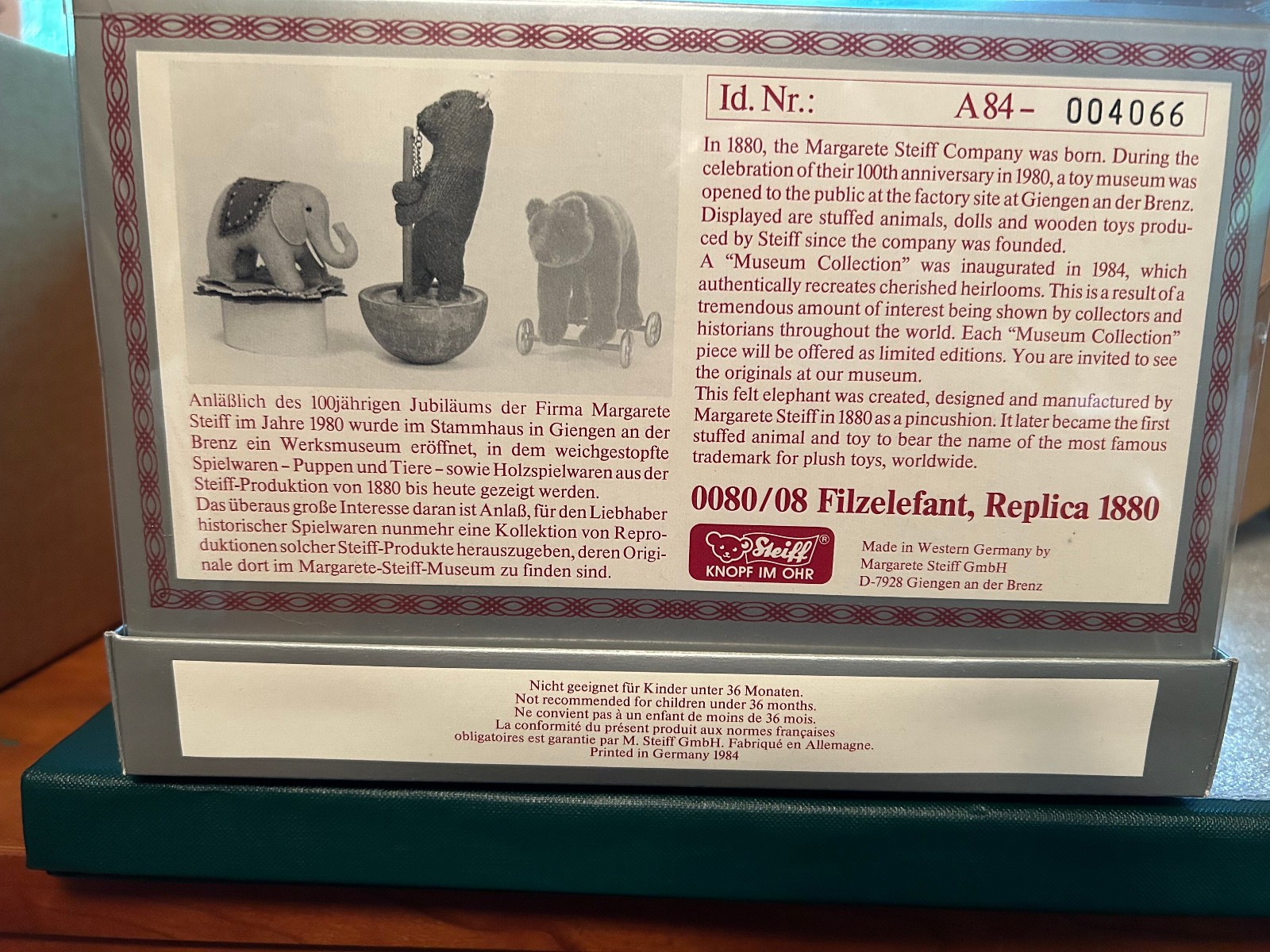 1984 Steiff Museum Collection Replica of 1880 Felt Elephant