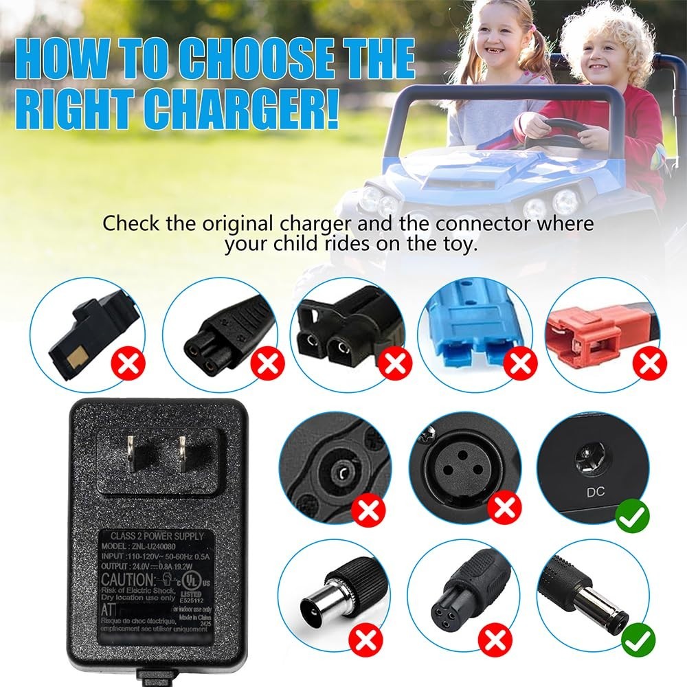 24V Charger for Ride On Toys, 24V Battery Charger with Charging Indicator Light