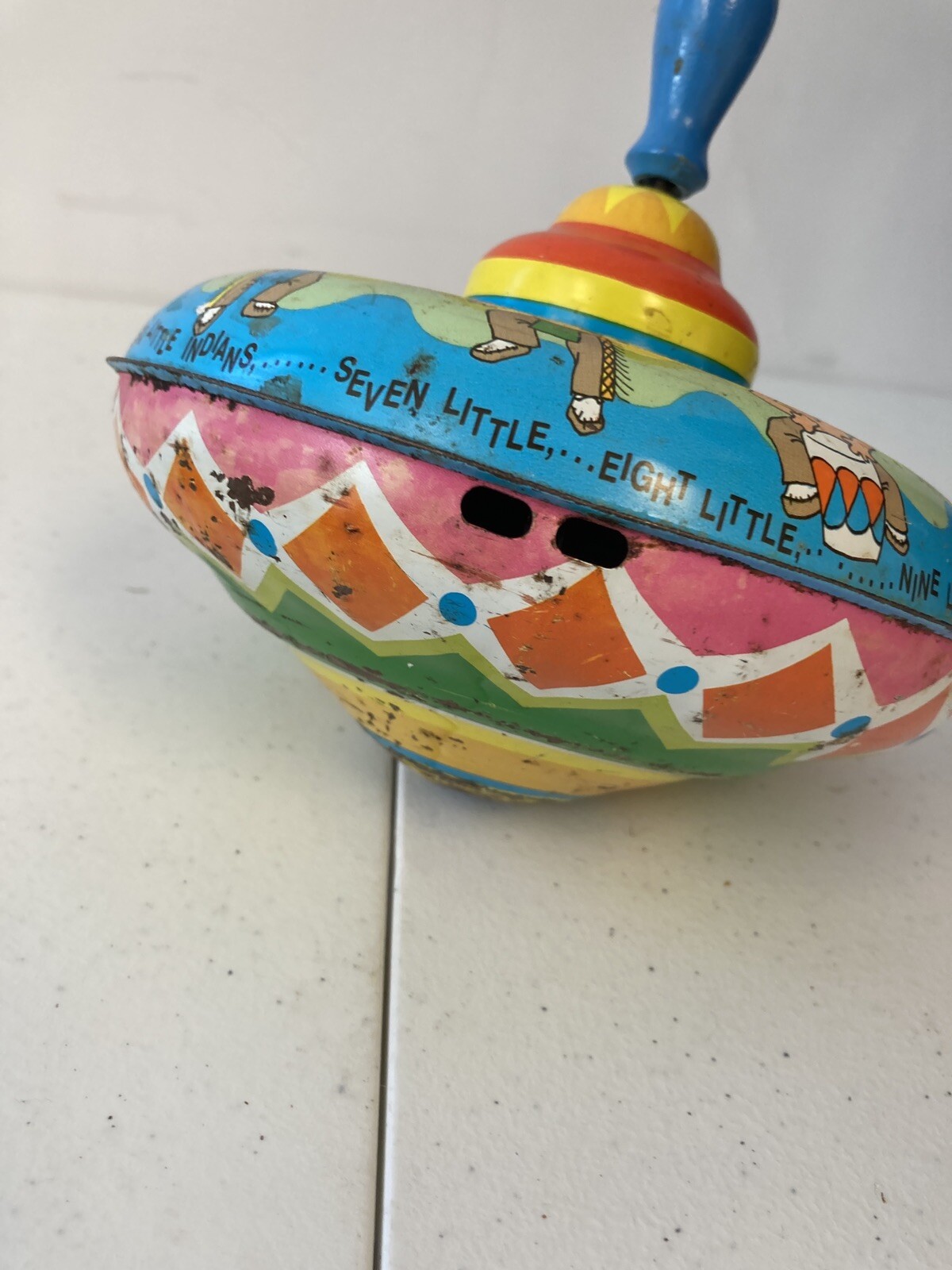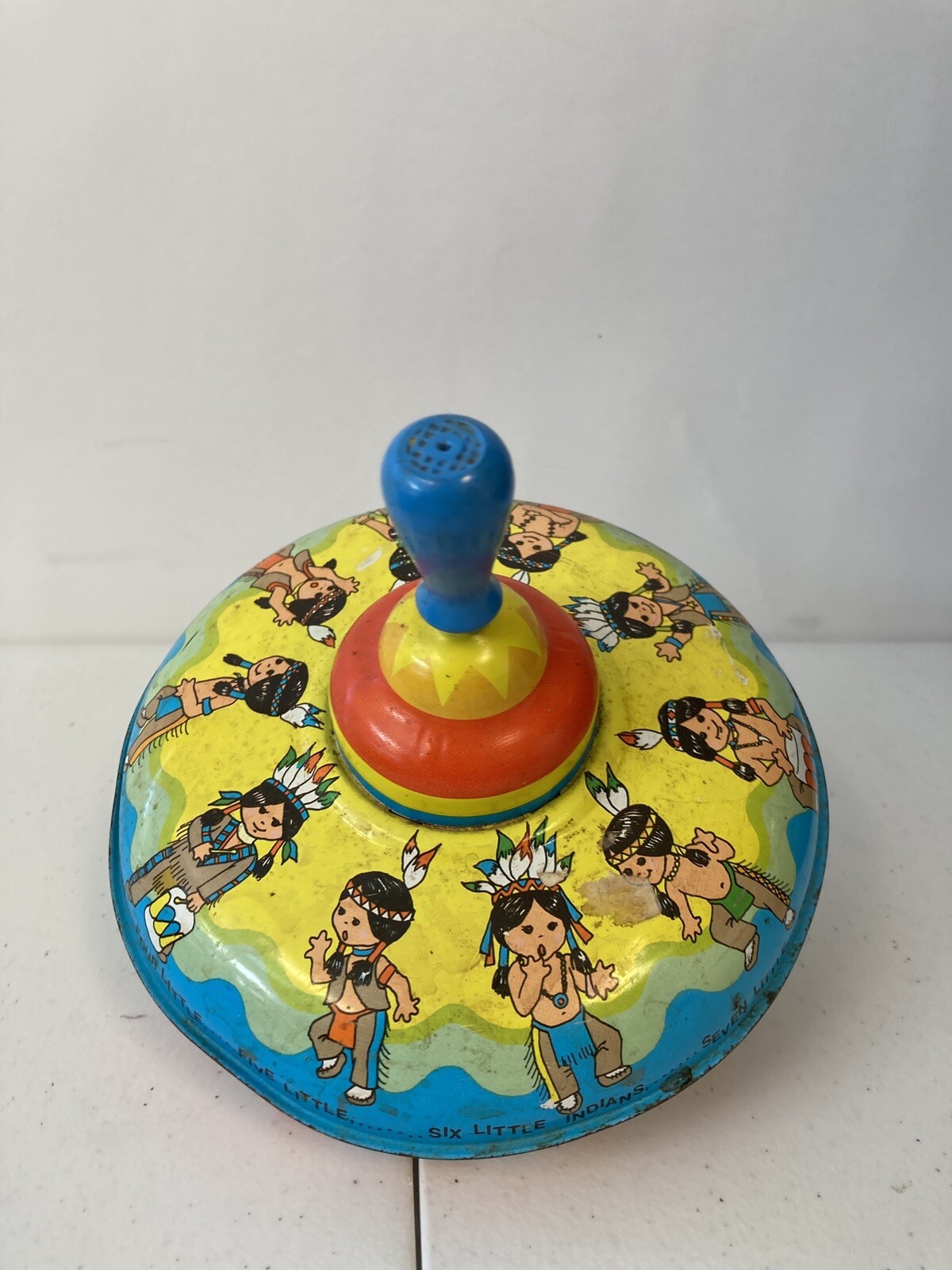 как выглядит Vintage Tin Ohio Art Lithograph Toy Top Indians A3-34 фото