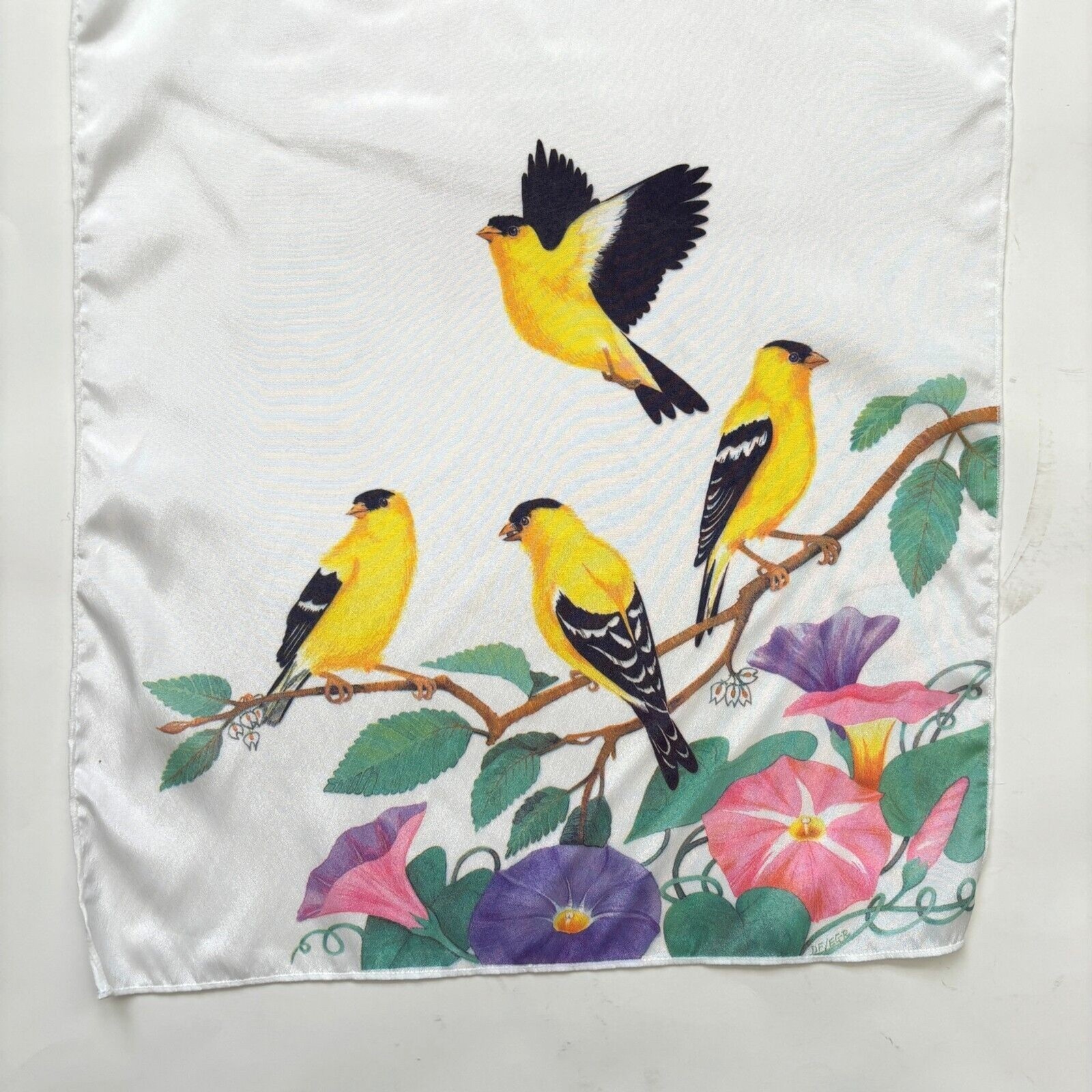 как выглядит Vintage Womens Songbird Scarf Signed Gold Finch Long Rectangle Floral фото
