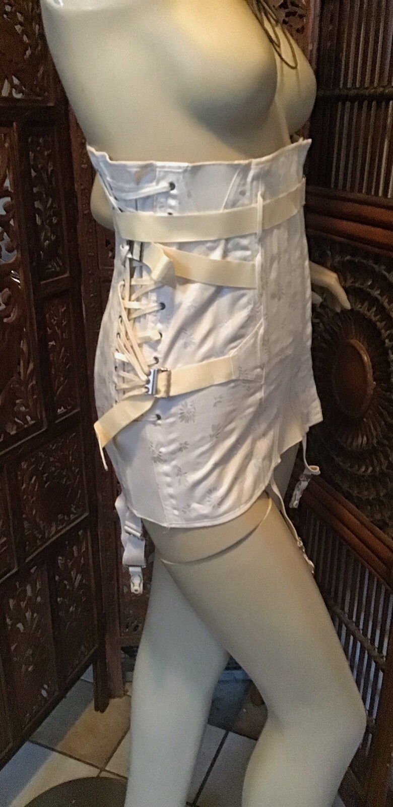 как выглядит Vintage Kellogg Long Line Corset Floral Design Waist Cincher Girdle with Garters фото