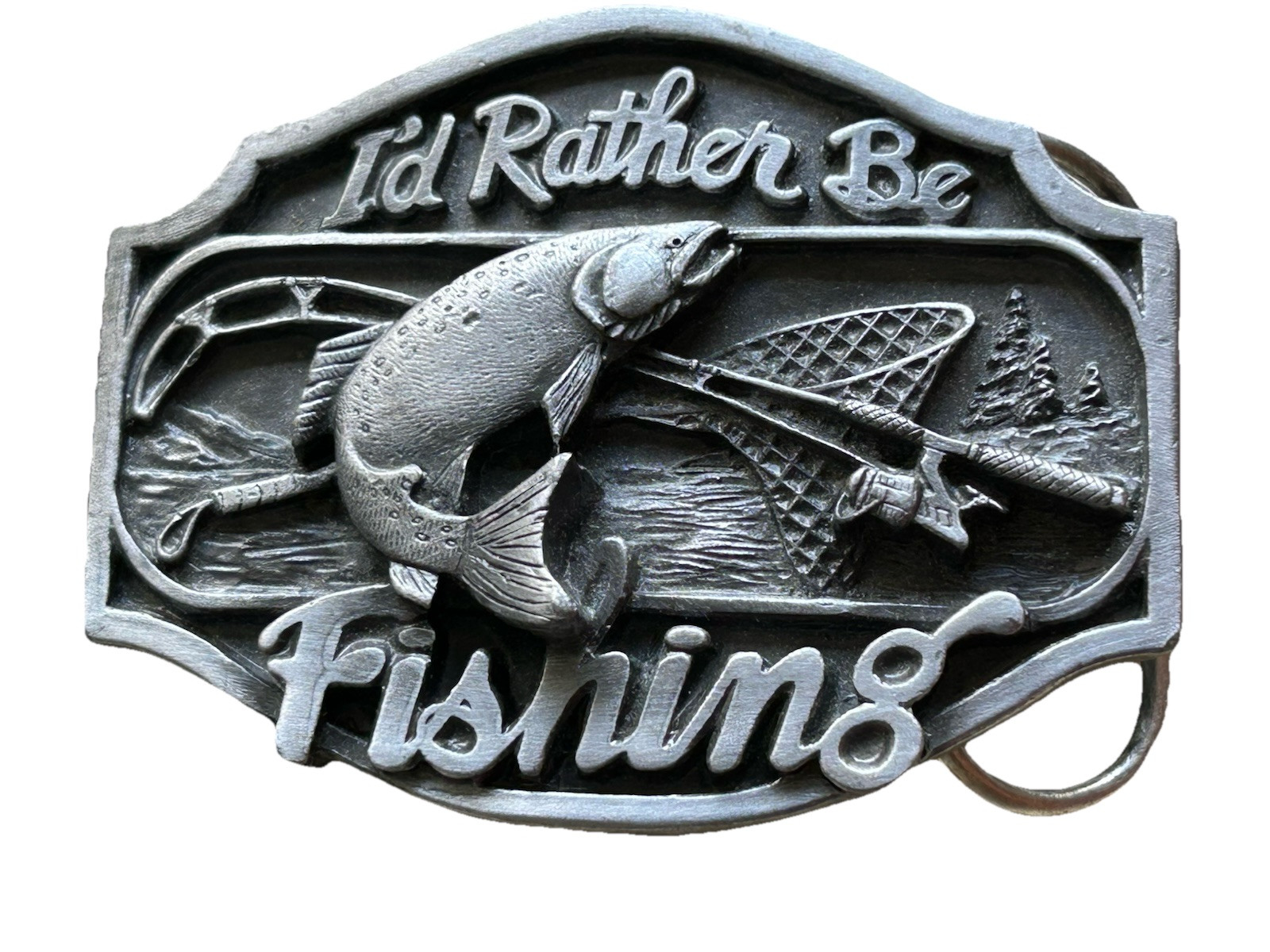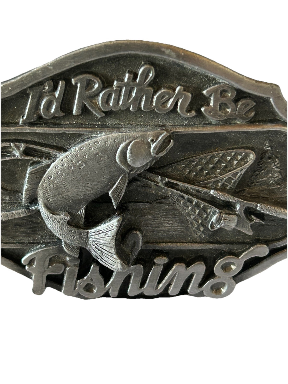 Vintage 1989 Arroyo Grande Buckle Co I d Rather Be Fishing Pewter Buckle USA