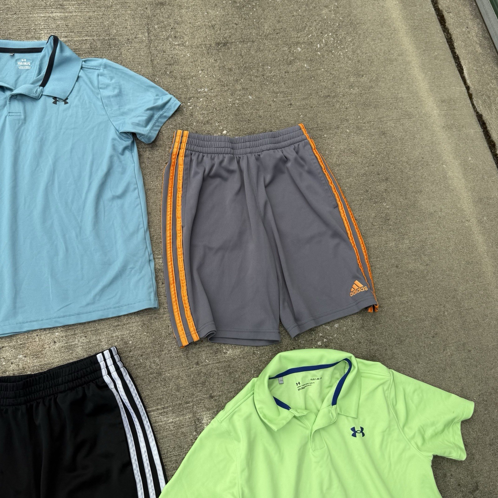 как выглядит 8 PC LOT Adidas UA Youth Boy L Pants Athletic Shorts SHIRTS Hoodies Under Armour фото
