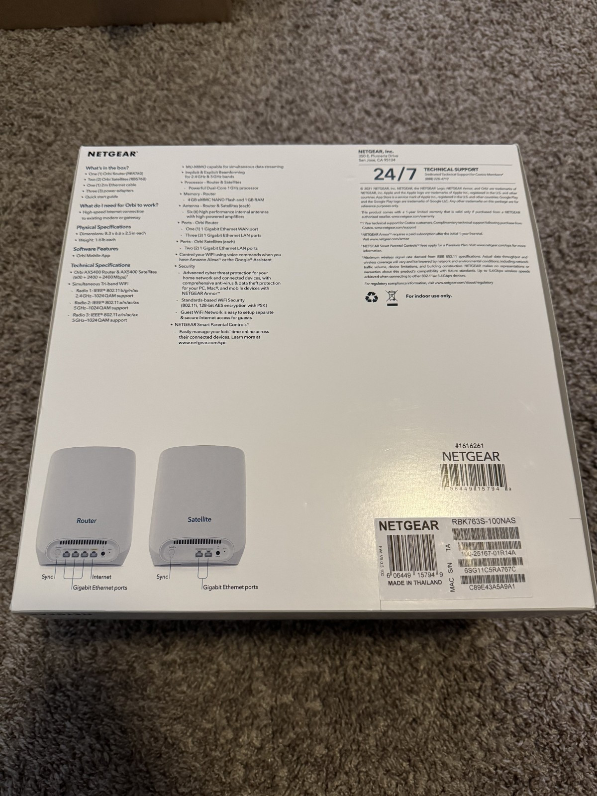 Netgear Orbi Tri-Band Mesh Wifi 6 System AX5400 RBK763S 3 Pack 7500 sq ft