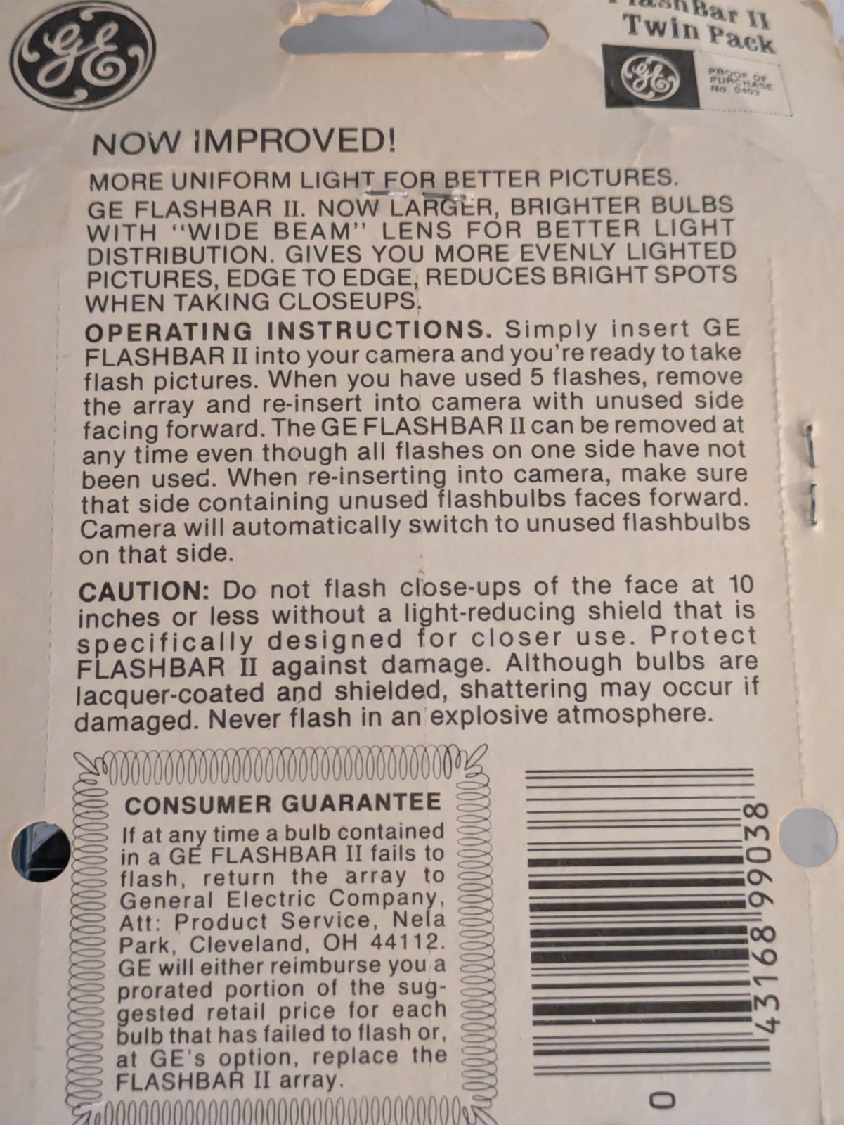 Vintage NOS GE Polaroid SX70 Twin Pack Flash Bar Unopened