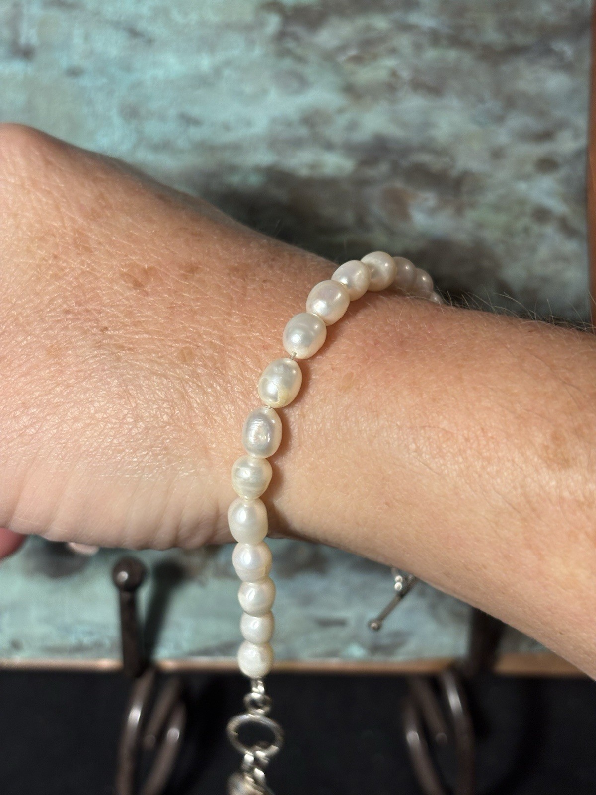 Sterling Silver Pearl Toggle Bracelet With Heart